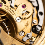 Este Universal Geneve Uni-Compax es un fantástico ejemplo de lo que el fabricante hizo tan bien en la década de 1940. La caja Jumbo de oro amarillo de 18 quilates con pulsadores redondos alberga el deseable movimiento calibre 285.