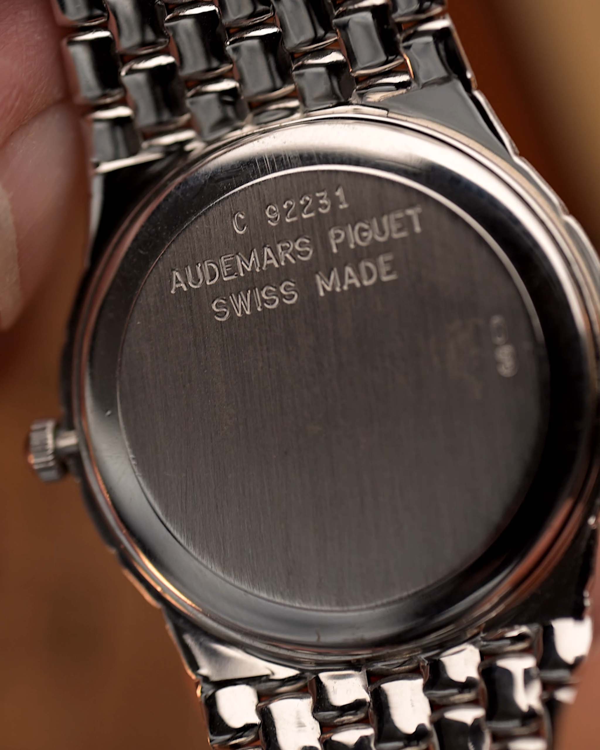 En su interior, el calibre 2080 de Audemars Piguet, un movimiento mecánico de cuerda manual, proporciona un cronometraje preciso en consonancia con las mejores tradiciones de la marca.