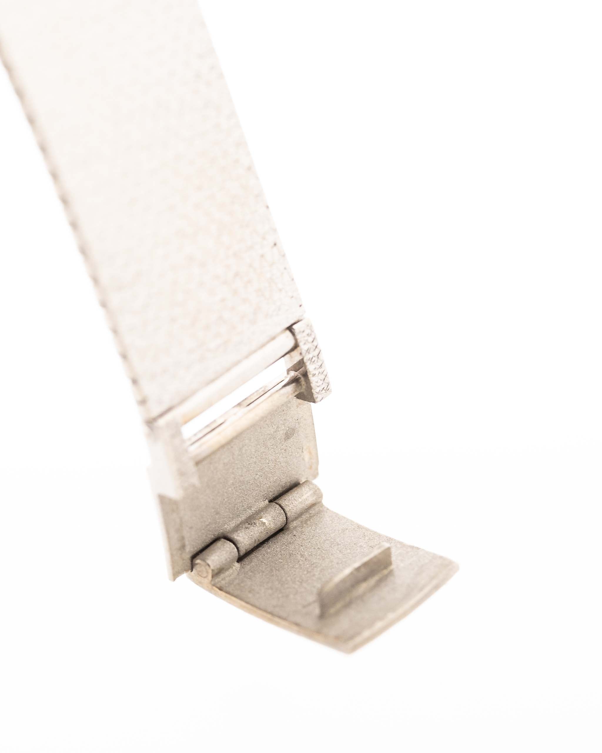 Un ejemplo maravillosamente conservado del refinamiento de mediados de siglo, este Audemars Piguet Ref. 5139BC encarna la elegancia y la sobriedad que definieron los relojes de vestir de la marca de los años sesenta. Elaborada en oro blanco de 18 quilates, la caja ultrafina tiene una presencia limpia y minimalista en la muñeca, permitiendo que la exquisita esfera cobre protagonismo.