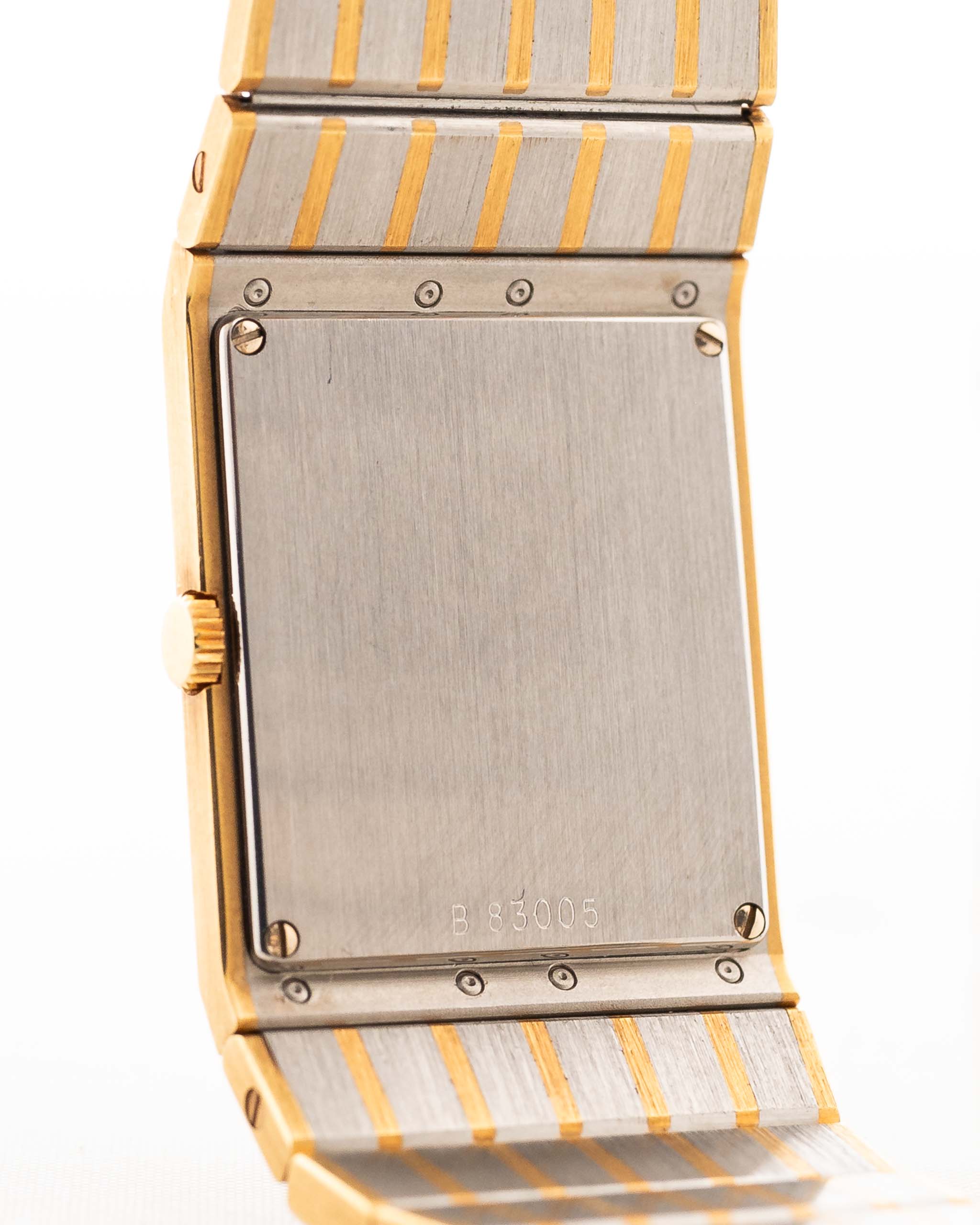 • Caja de 3 cuerpos de acero inoxidable de 18 quilates en dos tonos y oro amarillo con fondo atornillado