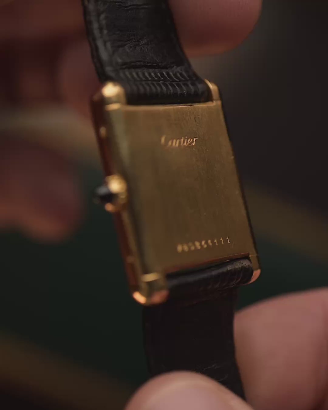 En su interior late un movimiento Cartier de cuerda manual, revisado profesionalmente y listo para lucir durante décadas. Combinado con una hebilla original Cartier de oro amarillo de 18 quilates, este Tank no es sólo un objeto de diseño, sino una pieza de relojería y de historia cultural.