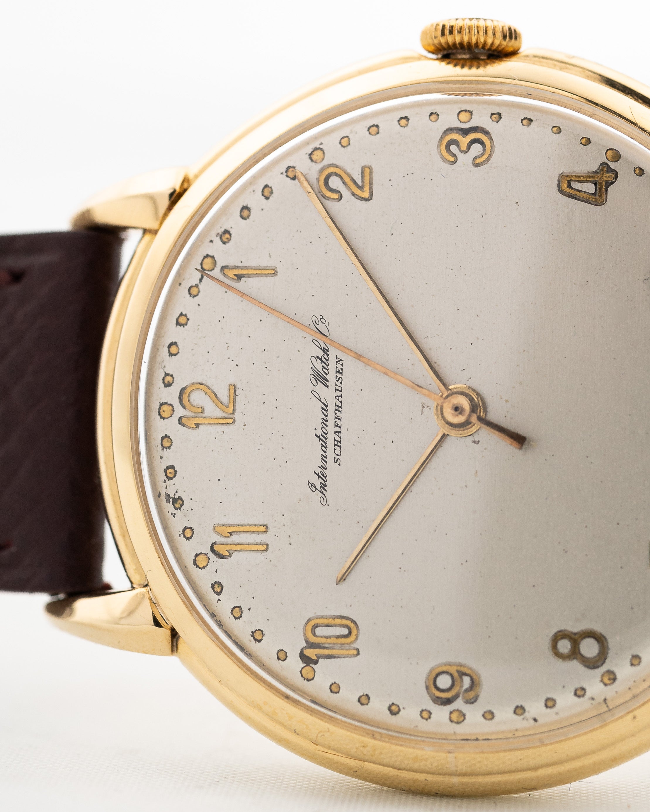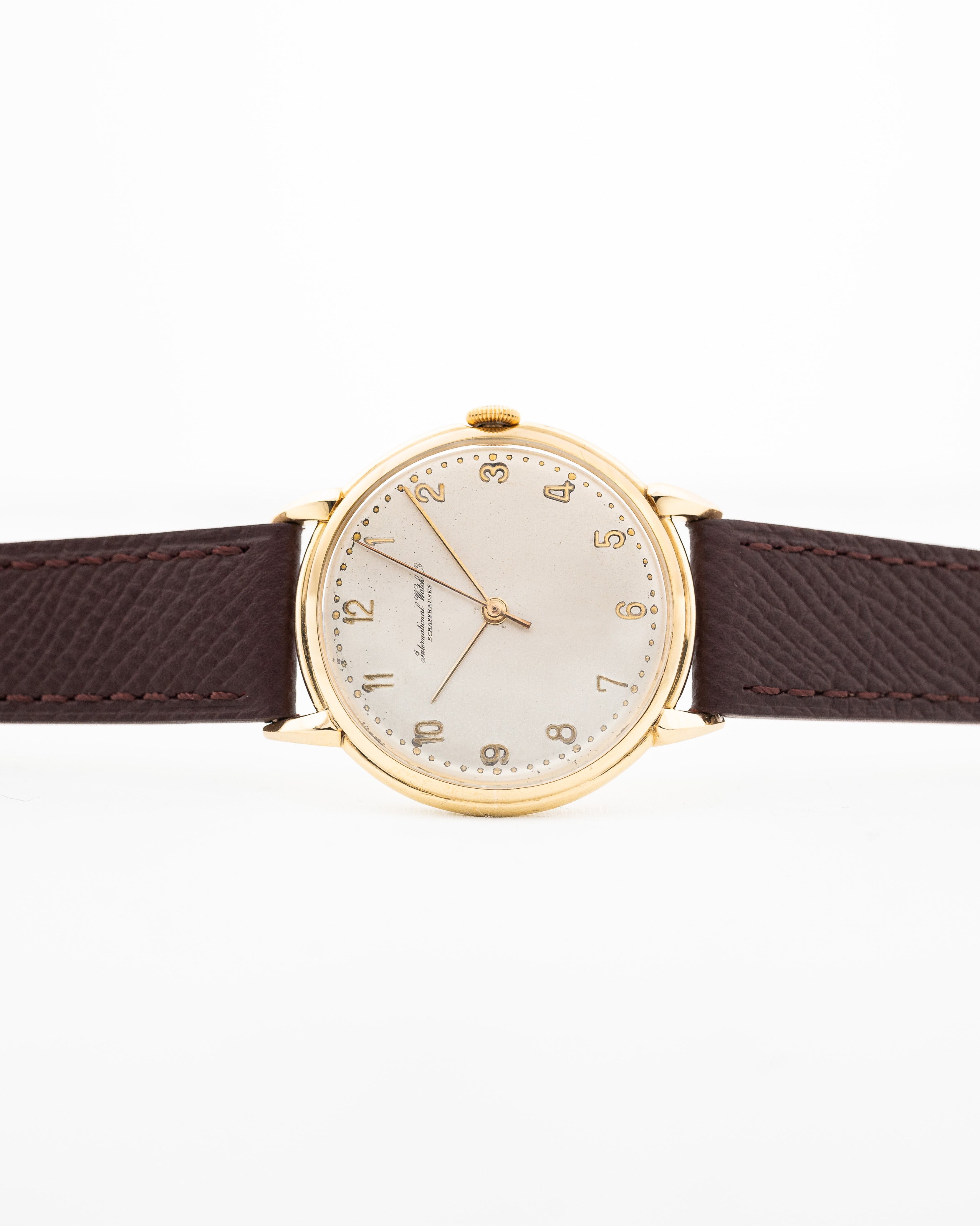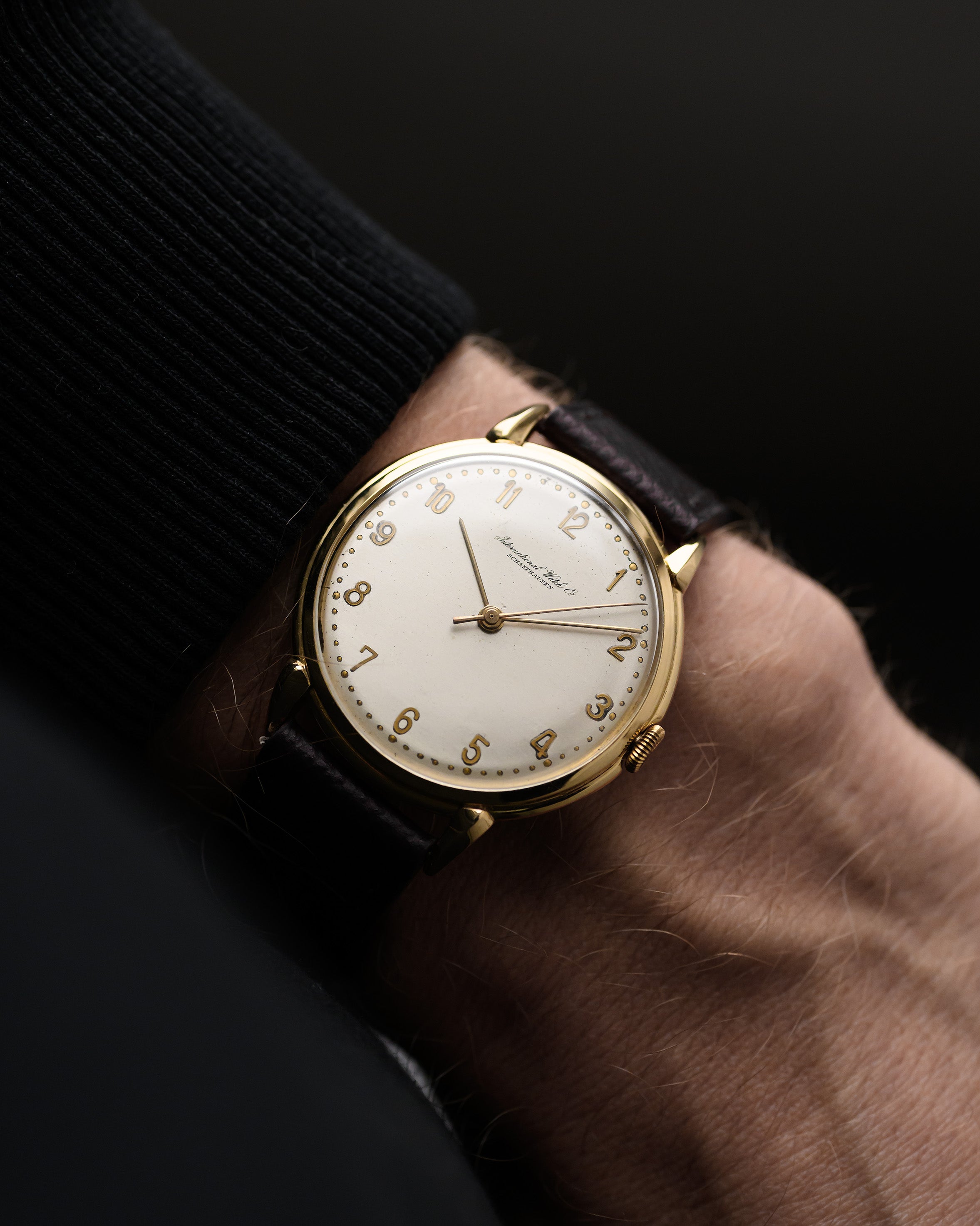 IWC ha producido una gran variedad de relojes de pulsera desde una época temprana, desde relojes de vestir hasta relojes de aviación. Este ejemplar, de oro amarillo de 18 quilates en estilo Calatrava con asas de araña, sería una constante en las colecciones de cualquiera, sobre todo porque se trata de un ejemplar excepcional de 1945.