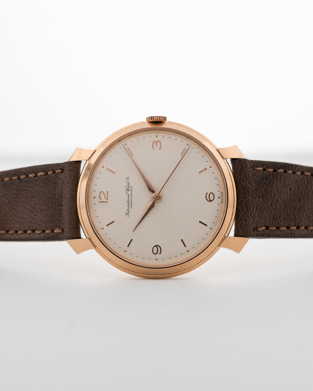 IWC ha producido una gran variedad de relojes de pulsera desde muy pronto, desde relojes de vestir hasta relojes de aviación. Este ejemplo, en oro rosa de 18 quilates con asas de aleta de tiburón, sería una constante en las colecciones de cualquiera, sobre todo porque se presenta en estado NOS.