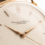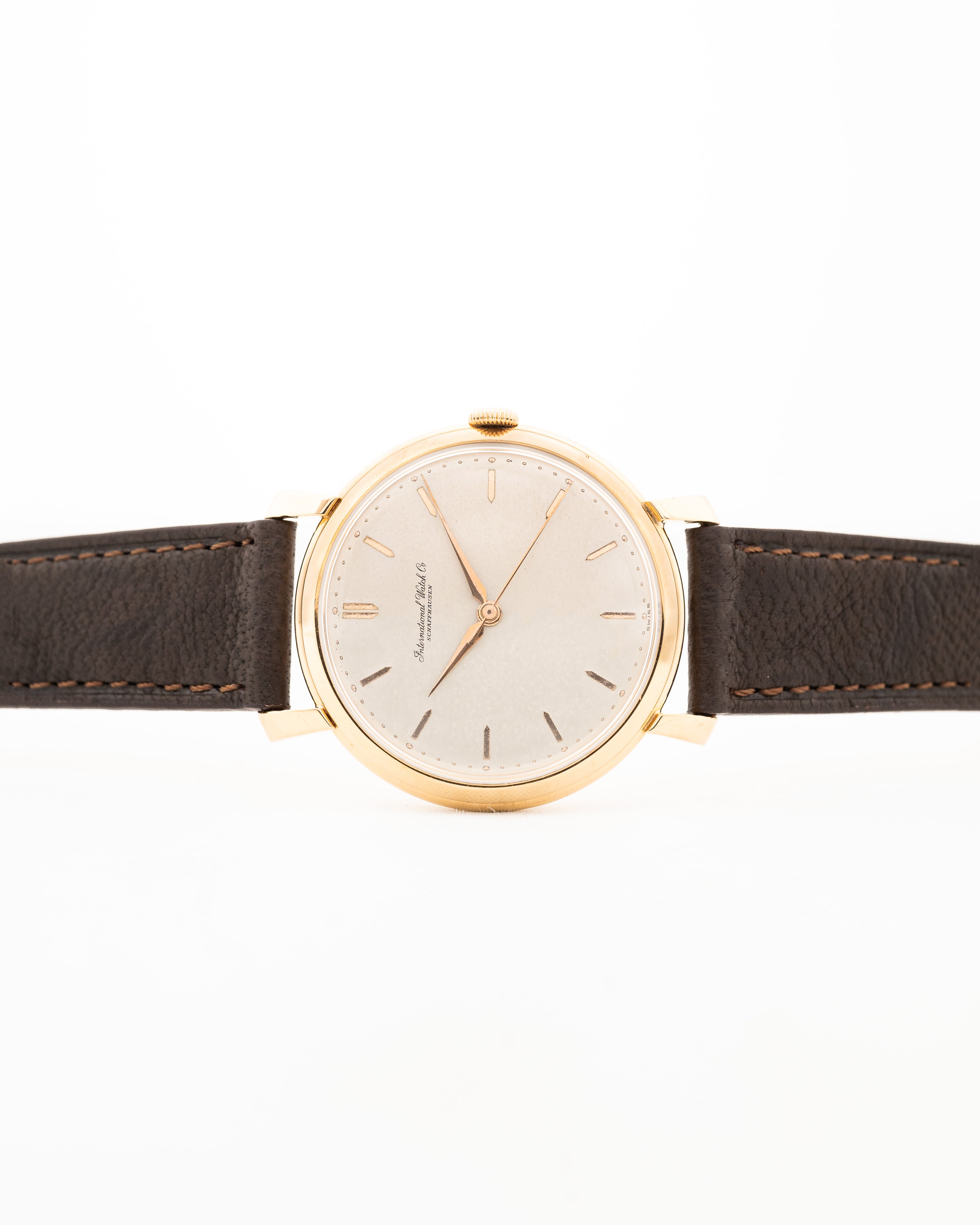 IWC ha producido una gran variedad de relojes de pulsera desde muy pronto, desde relojes de vestir hasta relojes de aviación. Este ejemplo, en oro rosa de 18 quilates con su esfera blanca/plateada, seguiría siendo una constante en las colecciones de cualquiera, sobre todo porque viene con unas hermosas y finas asas de aleta de tiburón.