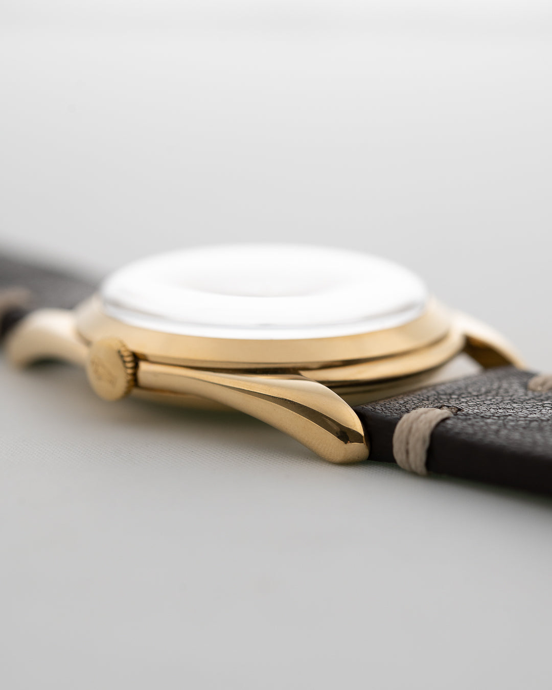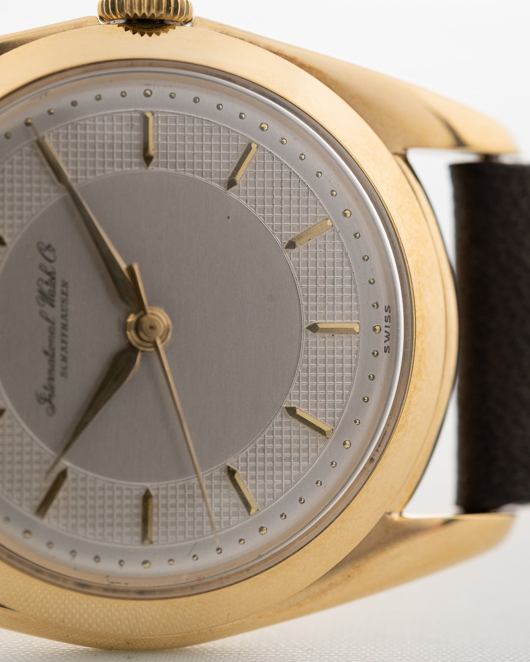 IWC ha producido una gran variedad de relojes de pulsera desde muy pronto, desde relojes de vestir hasta relojes de aviación. Este ejemplar, en oro amarillo de 18 quilates con una hermosa esfera de nido de abeja seguiría siendo una constante en las colecciones de cualquiera.