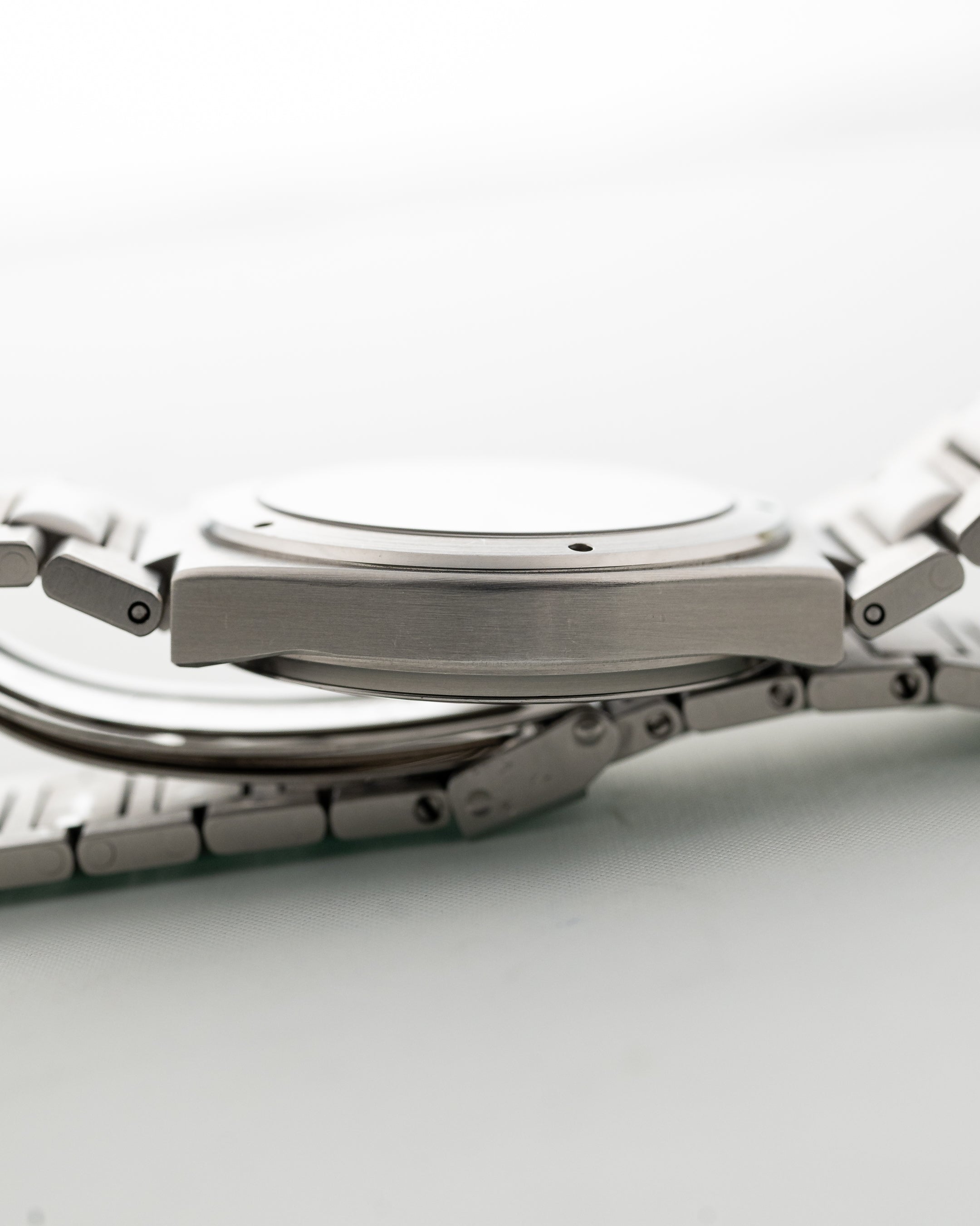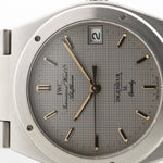 La firma clásica de IWC en la esfera gris de papel cuadriculado añade una especie de sofisticación estudiosa a este reloj deportivo de los años 80 decididamente lujoso pero accesible, y lo mejor es que se presenta en un estado casi NOS.