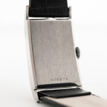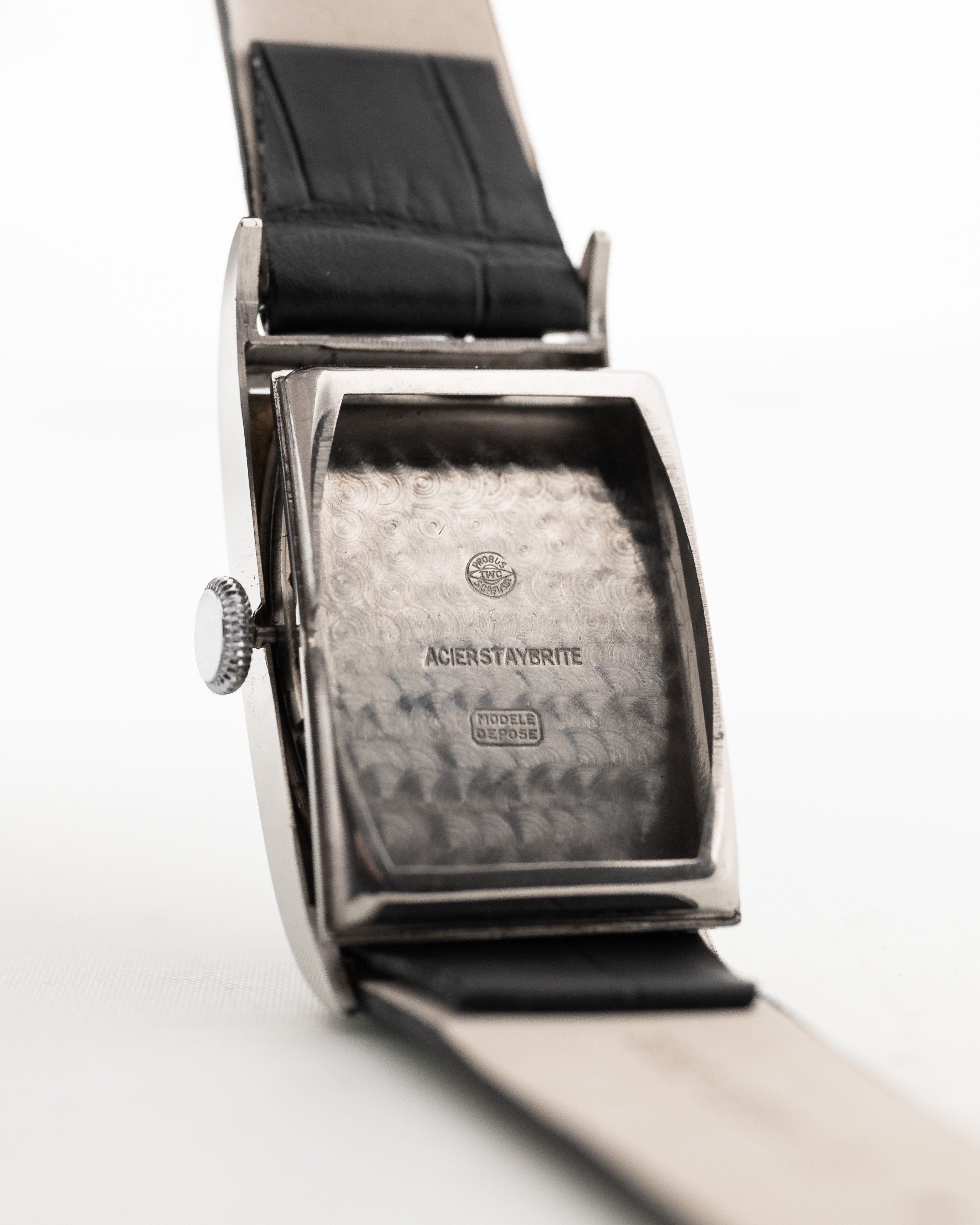 Nuestro ejemplar, de acero inoxidable y forma rectangular con asas rectas, seguiría siendo una constante en las colecciones de cualquiera, sobre todo porque se presenta en un estado excepcional y con una esfera negra muy poco común con números arábigos.