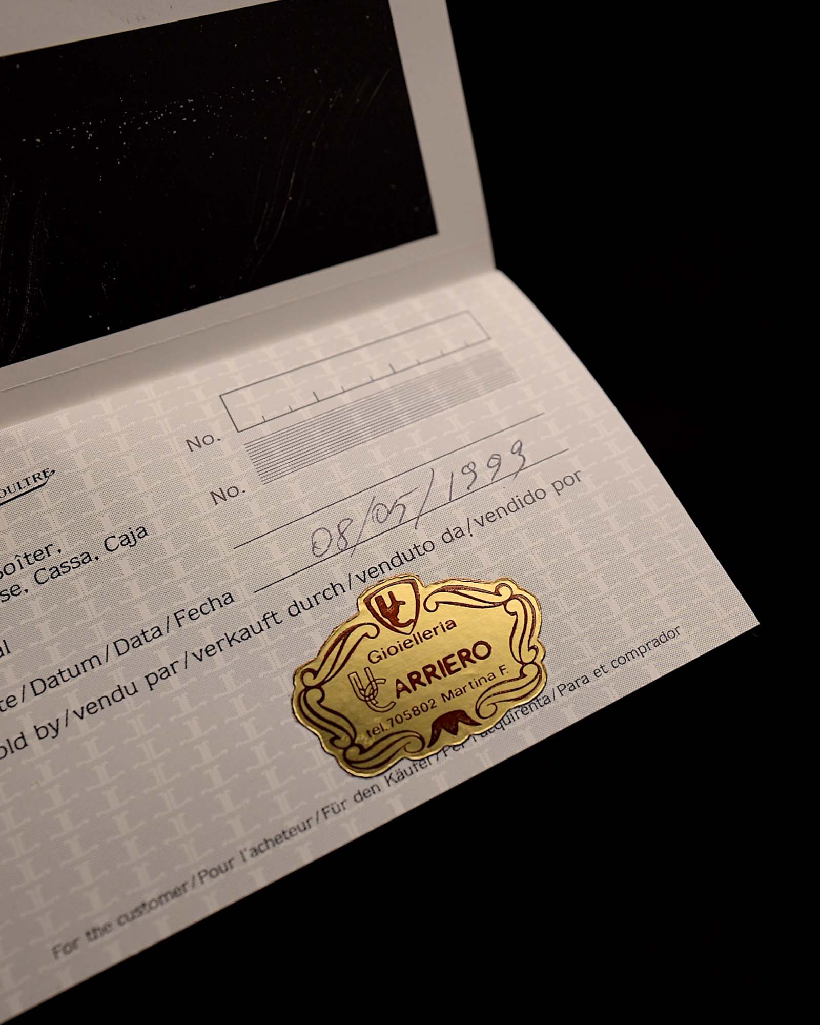 - Viene con la tarjeta de garantía original de Jaeger LeCoultre de 1983, que no está rellenada, por lo que no se puede verificar si pertenece a este reloj en concreto.