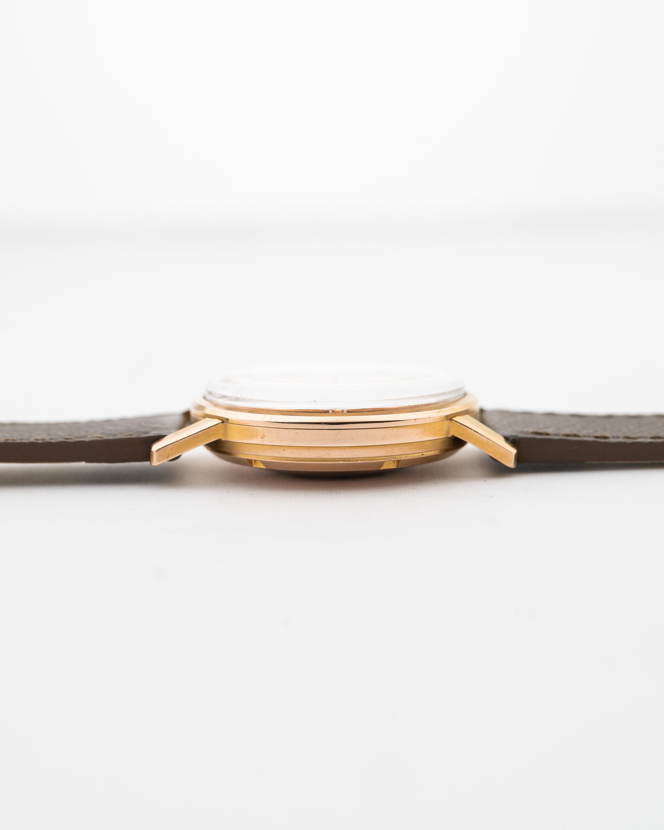 Este Longines Conquest, con su caja de oro rosa de 18 quilates, es un fantástico ejemplo de reloj de vestir. Presenta un anillo de capítulos facetado entre los bastones y la minutería y, además, una esfera en forma de pastel. La forma en que esta esfera juega con la luz es absolutamente asombrosa.