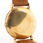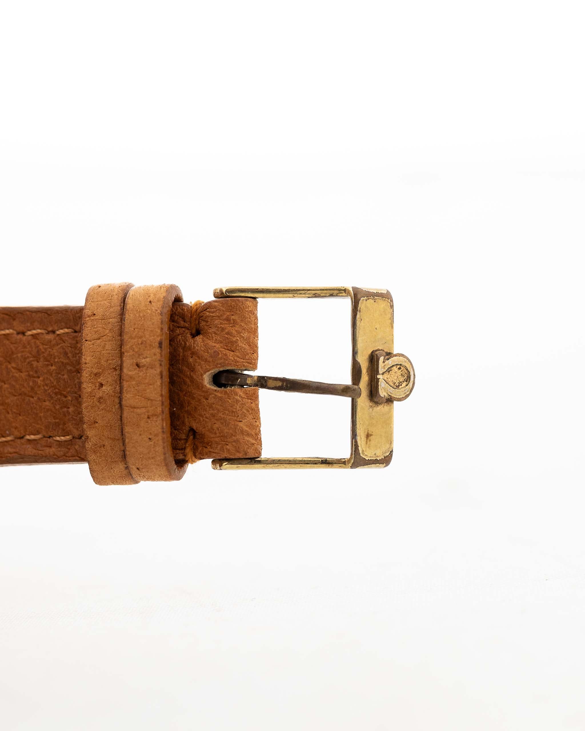 El Omega Cosmic se presentó en 1947 y estuvo en catálogo hasta 1956 como el reloj más prestigioso del catálogo de la marca. Nuestro ejemplar es una referencia 2485 en oro amarillo de 18 quilates, mide unos gigantescos 37 mm y alberga el movimiento Omega Calibre 27 DL PC basado en Lemania.