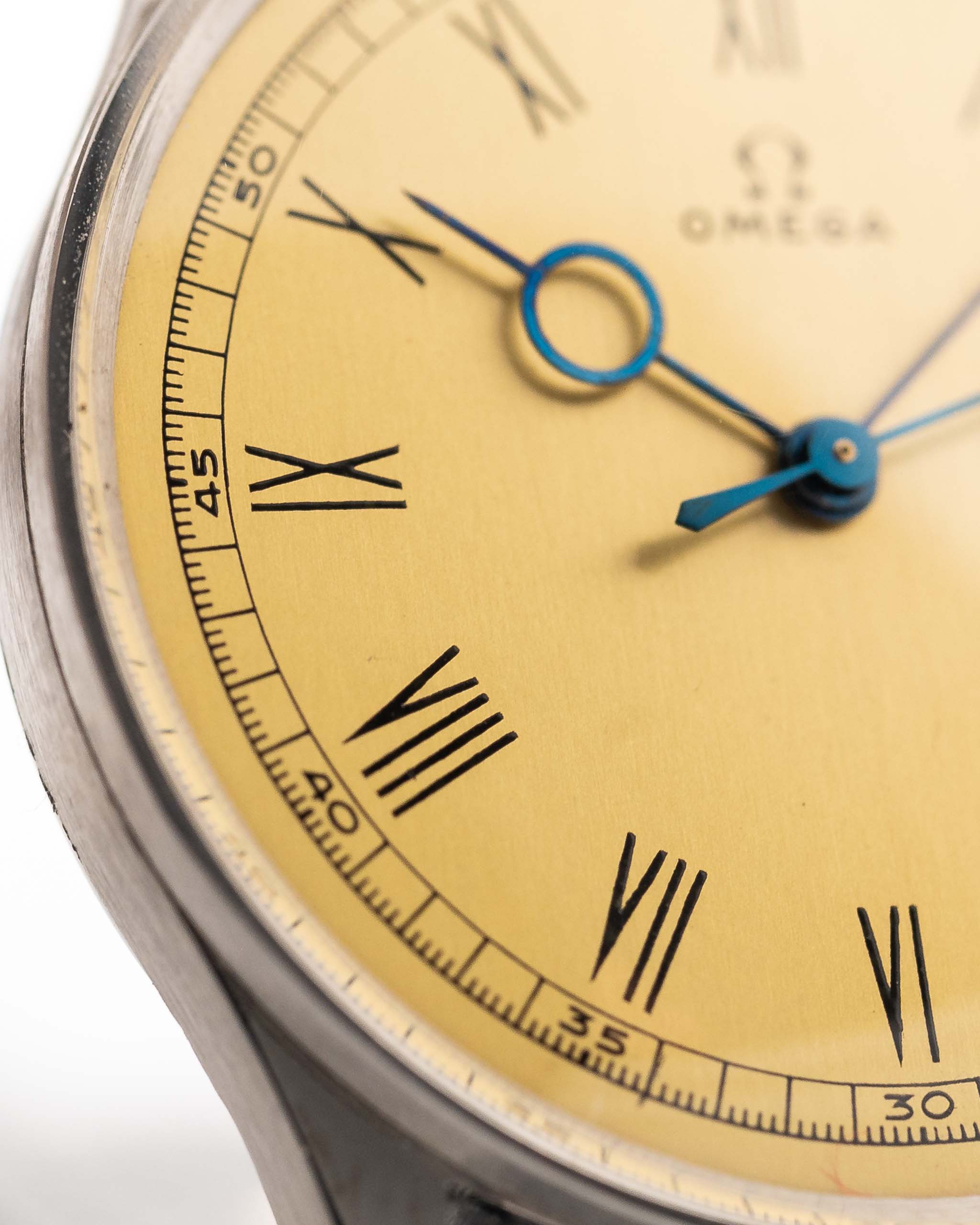 Impulsado por el célebre calibre Omega 23.4 S.C., este reloj combina el estilo vintage con una fiabilidad duradera. Una pieza imprescindible para los coleccionistas que aprecian el diseño de los primeros Omega, la tipografía Art Déco y la auténtica presencia en la muñeca de los años treinta.