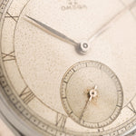Esta belleza presenta un diseño de caja sencillo con una fantástica esfera plateada/crema, agujas de hoja, índices romanos y el fiable Cal. 30T2, que data de 1943.