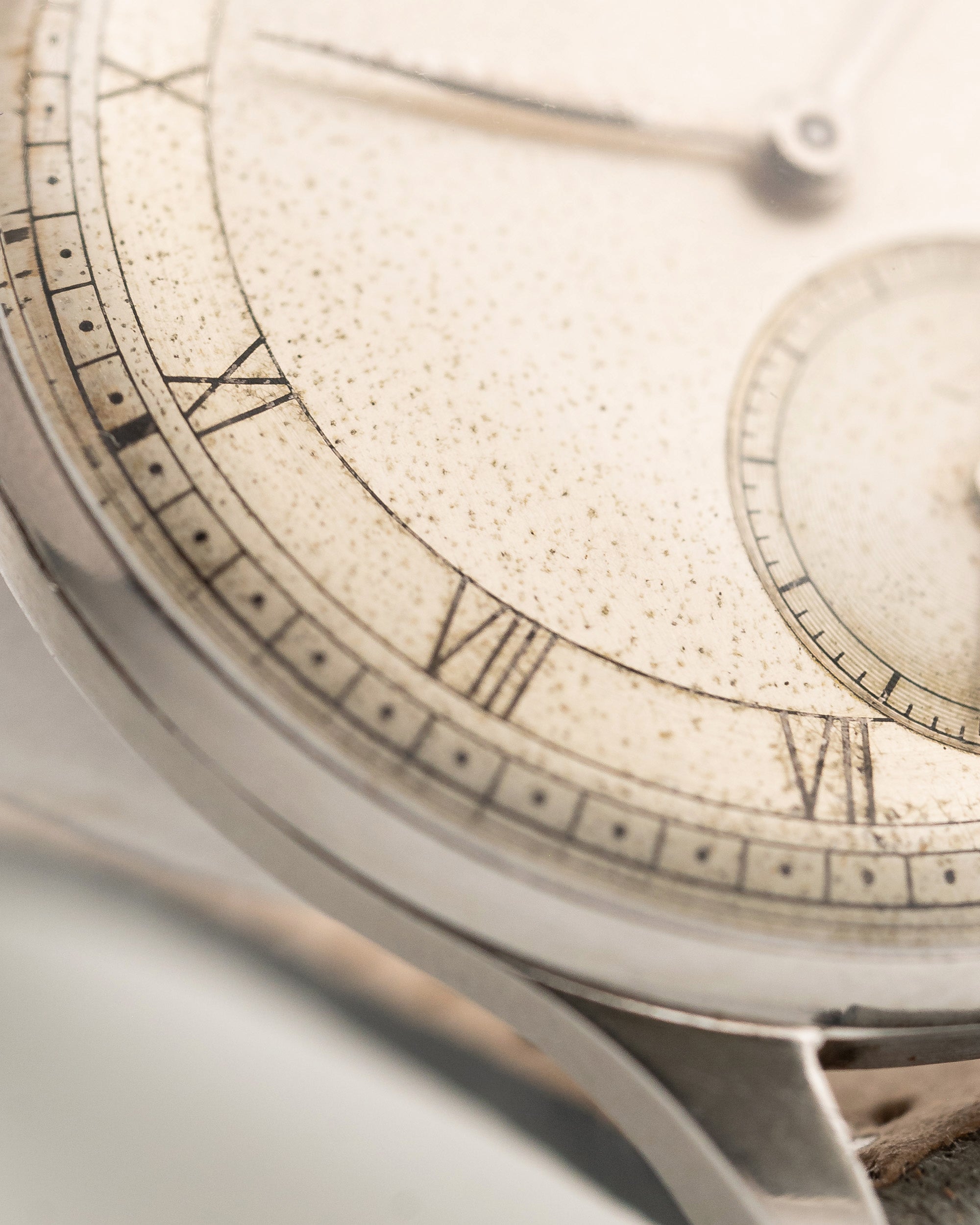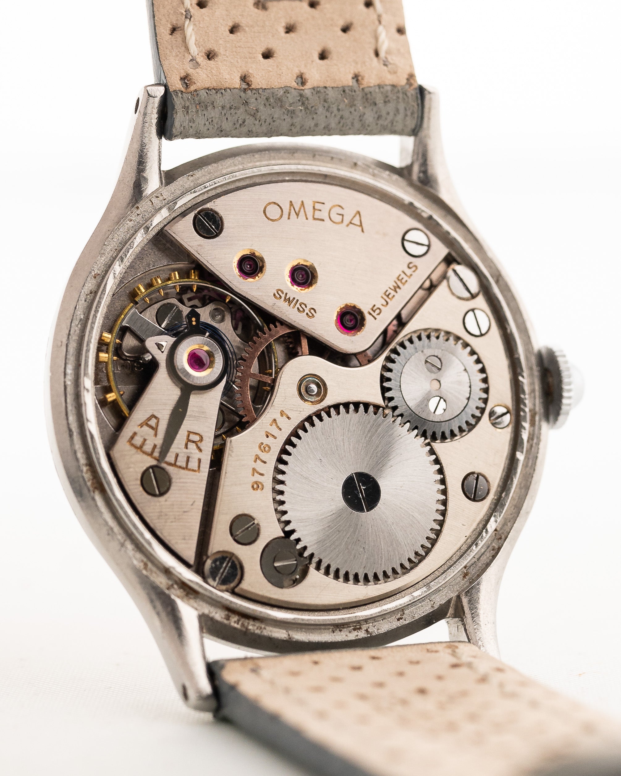 Encontrar un Omega de los años 40 en buen estado de conservación es bastante difícil. Pero encontrar uno con una esfera Art déco tan bien diseñada con un bello segundero secundario es casi imposible.