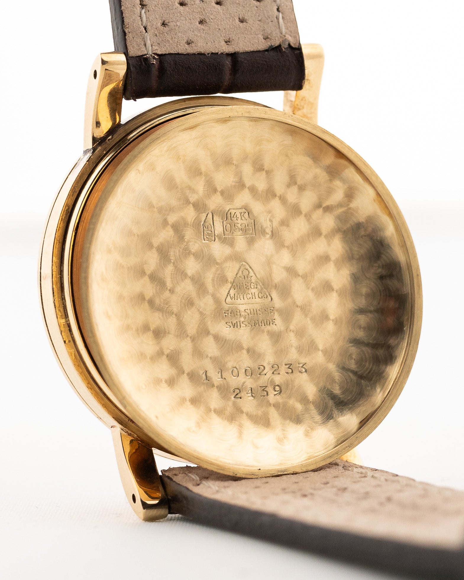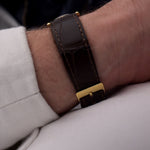 Nuestro reloj en particular, la Referencia 2439, se presenta en una caja de oro amarillo de 34,5 mm y hermosas asas de diseño exclusivo. Acentos como las impresionantes agujas e índices horarios de oro amarillo completan el aspecto con clase de esta pieza.