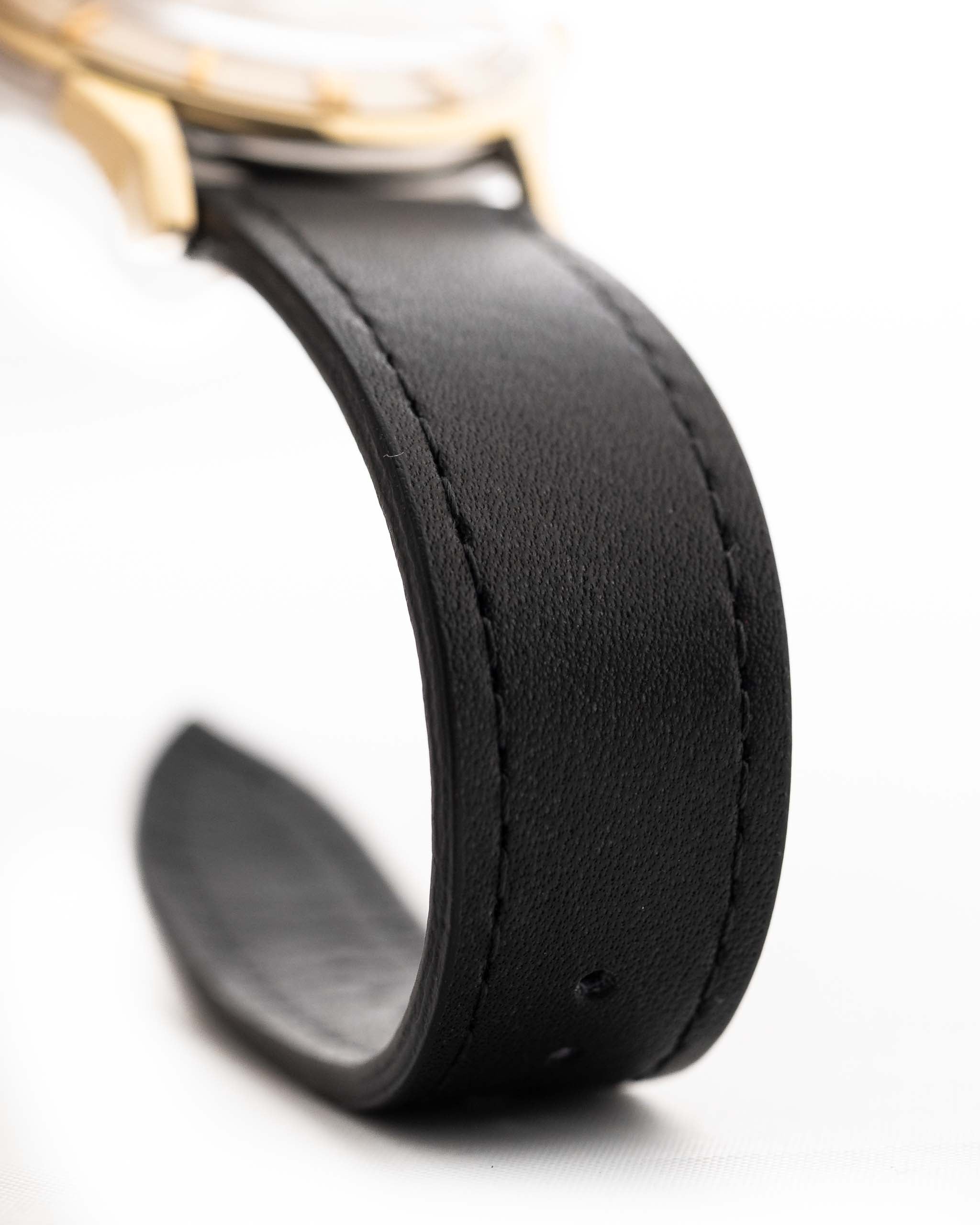 La esfera plateada en forma de pastel, con disposición en cruz y marcadores de bastón aplicados, confiere a este reloj una presencia refinada y arquitectónica. Un toque de pátina uniforme y honesta aumenta su encanto vintage sin disminuir su legibilidad ni su belleza.