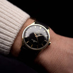 Este compacto y bello cronómetro automático Omega Constellation tiene todo lo que usted desea en un reloj de vestir: Caja de acero chapado en oro de 34 mm, segundero central, una esfera negra tipo pastel poco vista con índices de bastón. Lanzado por primera vez en 1952, el Constellation fue la respuesta de Omega al Rolex Datejust.