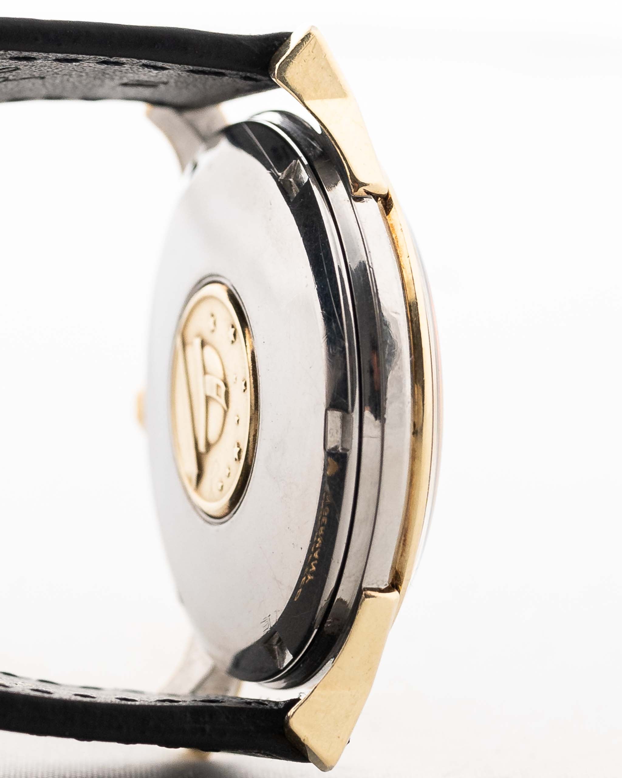 • Caja de acero chapado en oro de 3 cuerpos con fondo atornillado del fabricante Central Watch Case Co., La Centrale