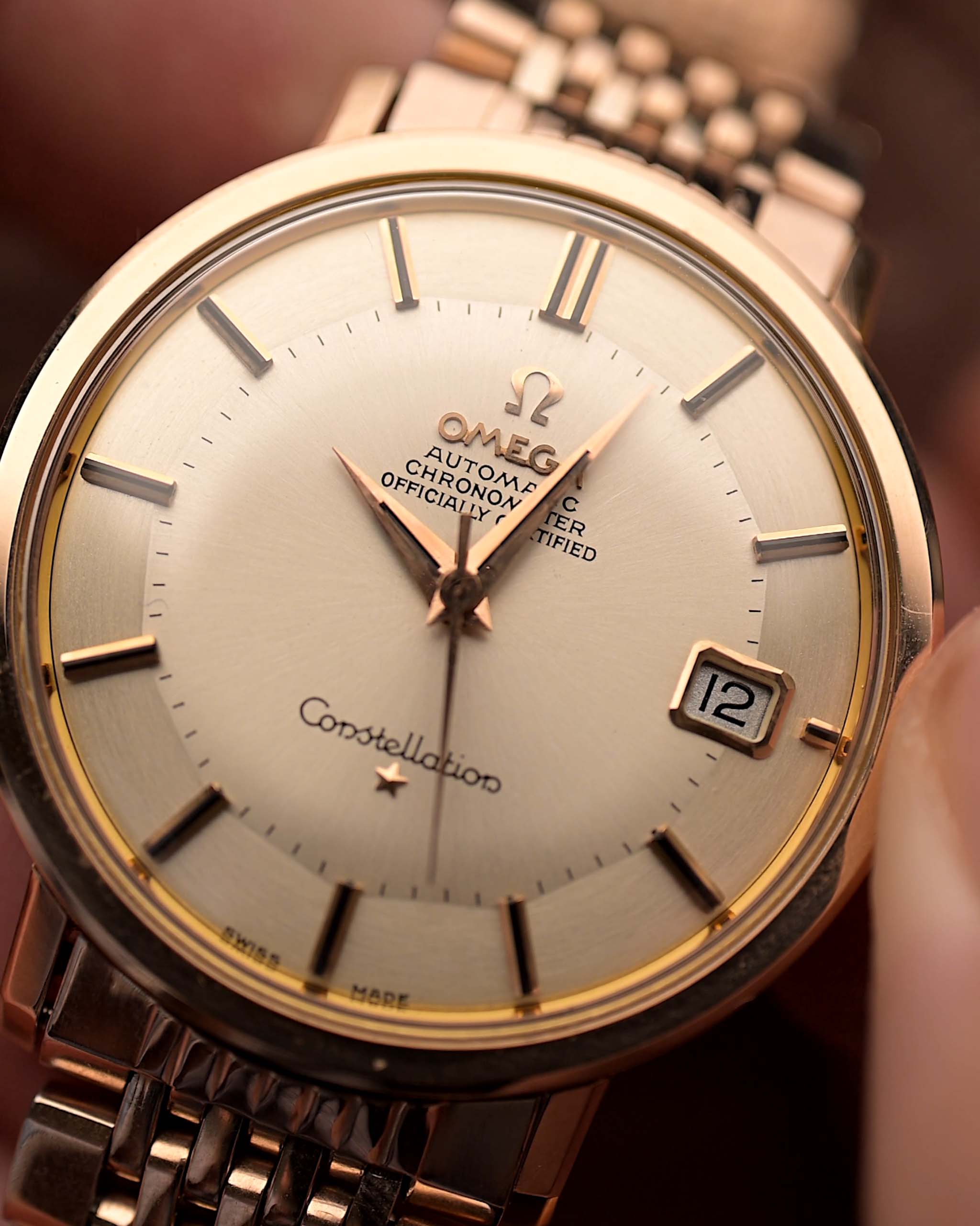 Omega Constellation 168.004 Rosa "Granos de Arroz", 1964 - Pastel clásico con detalles de ónice
