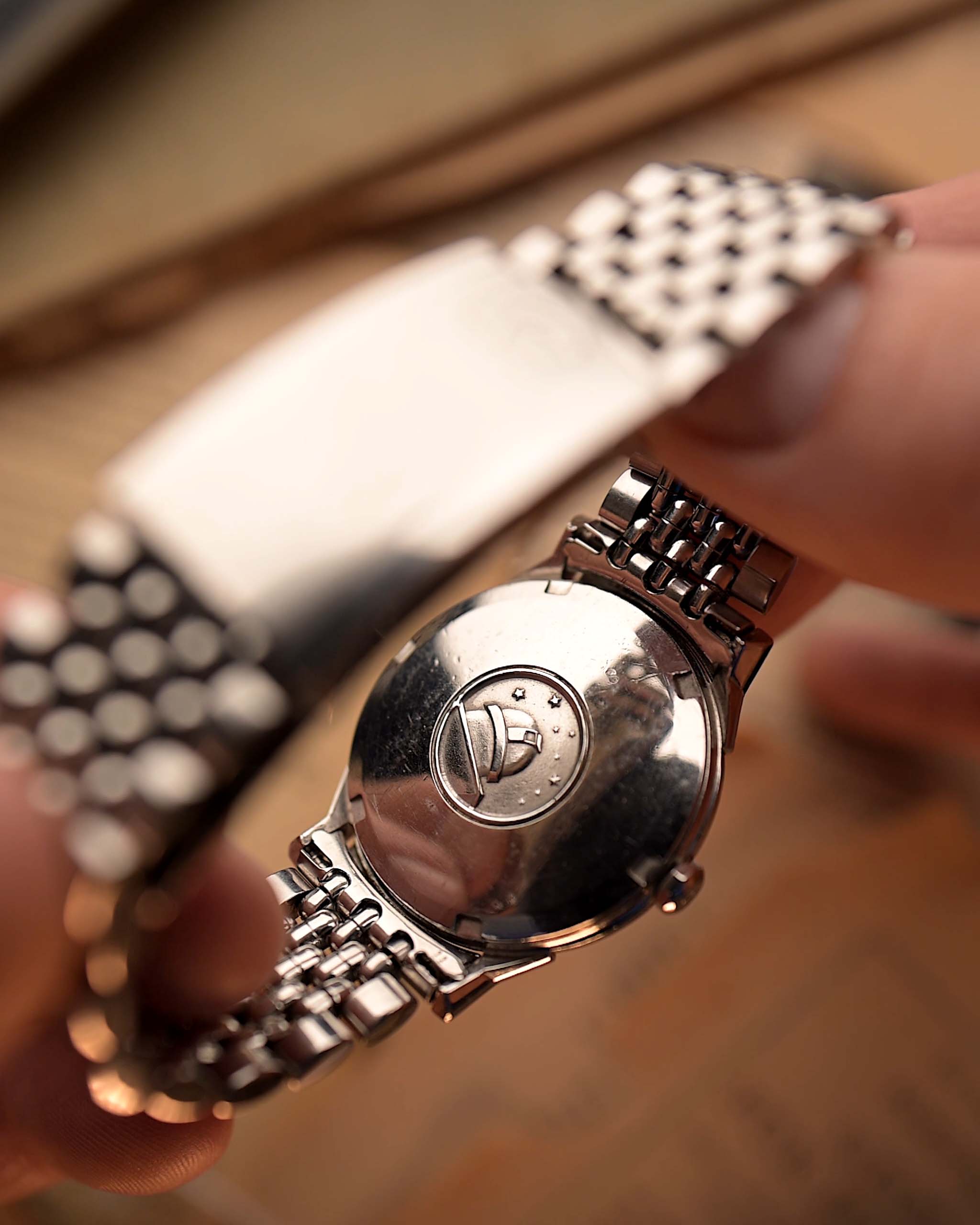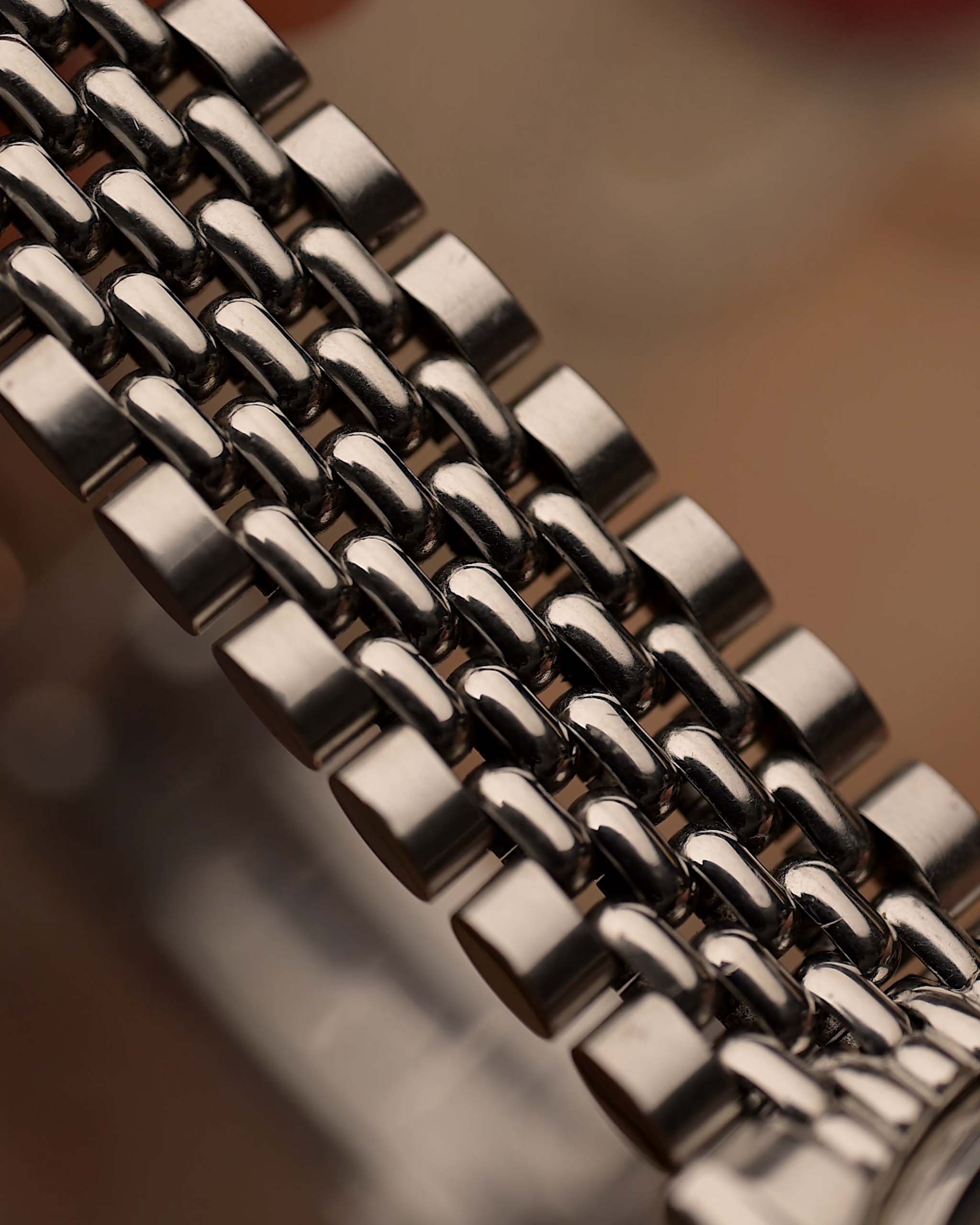 Impulsado por el calibre 561 automático con certificado de cronómetro, este reloj combina fiabilidad con un lujo tranquilo. Y la auténtica guinda: un raro brazalete "Cuentas de Arroz" a juego, que completa la pieza con la gracia Omega por excelencia.