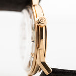 Este compacto y hermoso cronómetro automático Omega Constellation tiene todo lo que usted desea en un reloj de vestir: Caja de oro rosa de 18 quilates de 34,5 mm, segundero central, una preciosa esfera tipo "Pie Pan" con retícula y estilizados índices de bastón de oro rosa con incrustaciones de ónice. Lanzado por primera vez en 1952, el Constellation fue la respuesta de Omega al Rolex Datejust.