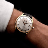 Bien proporcionado, sencillo y clásico, este Constellation cuenta con un fondo de caja atornillado, cronómetro automático Omega Calibre 561 y magníficas asas ligeramente inclinadas.