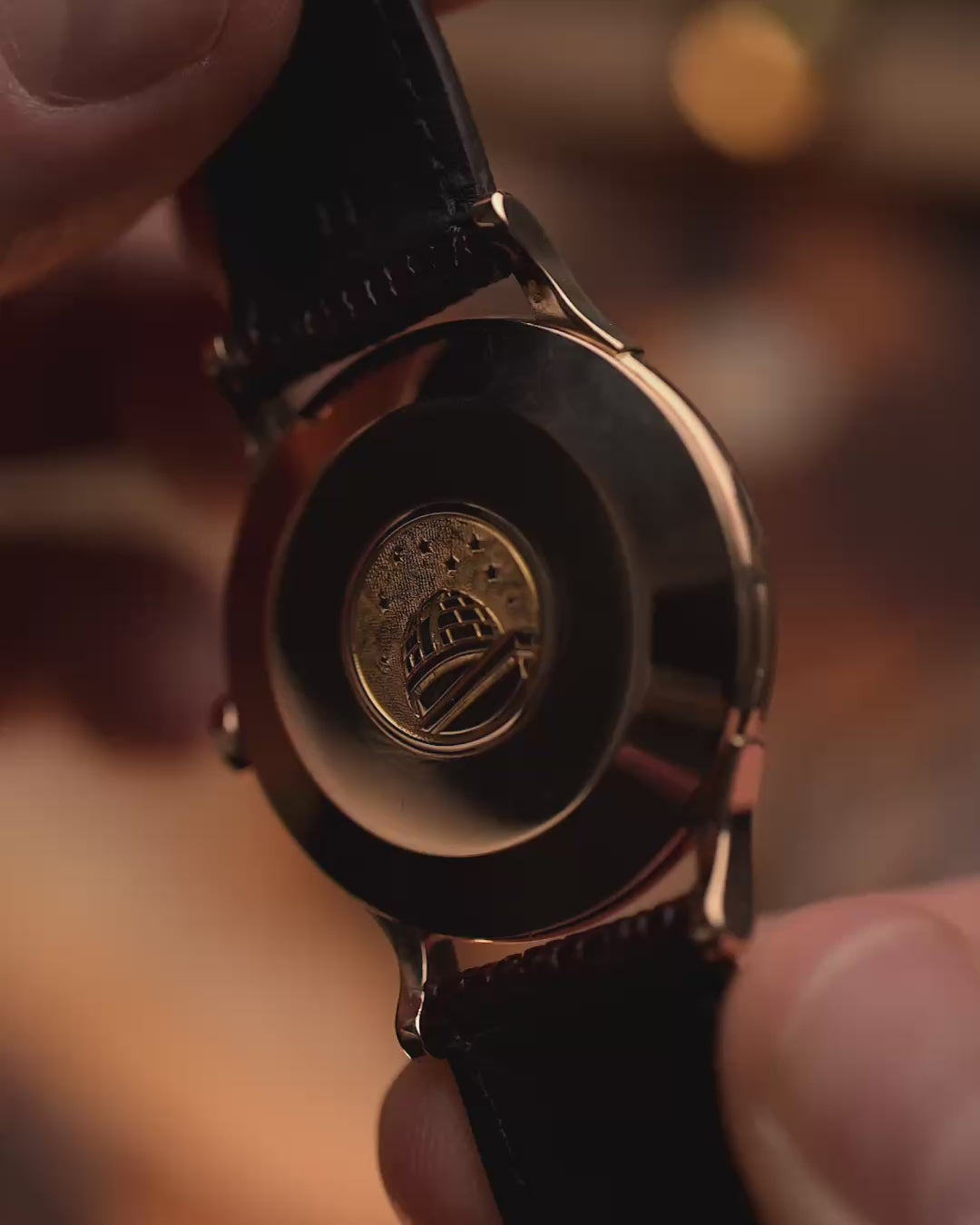 - Caja de oro rosa de 18 quilates con fondo a presión del fabricante de automóviles Antoine Gerlach SA.