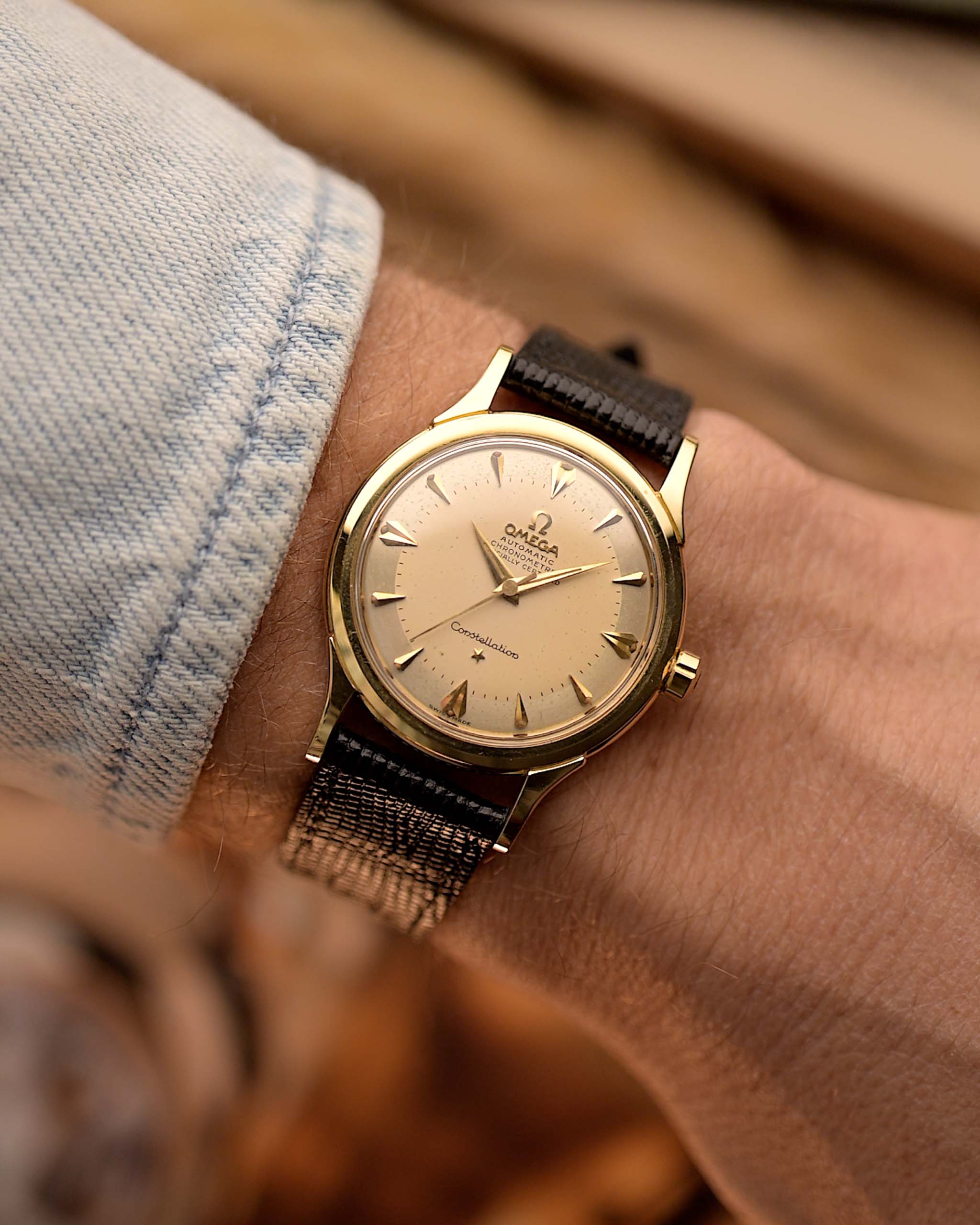 Lanzado en 1954, el Omega Constellation fue creado para competir con el Rolex Datejust - y esta temprana referencia 2782 es un fantástico ejemplo de esa misión. Con su caja de 35 mm de oro amarillo de 18 quilates, su clásica esfera bicolor y sus llamativos marcadores en forma de daga, es una pieza ponible de la historia de la relojería.