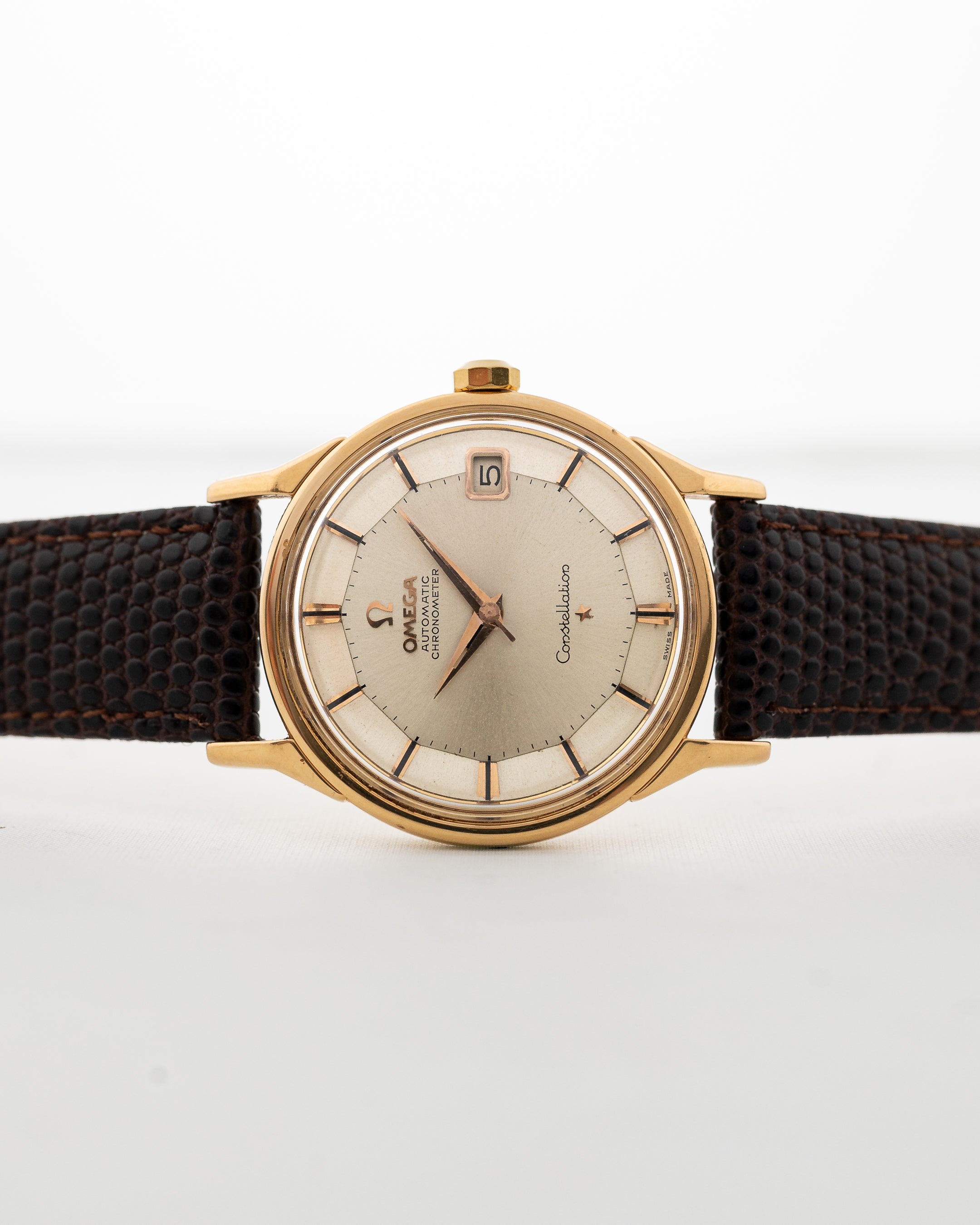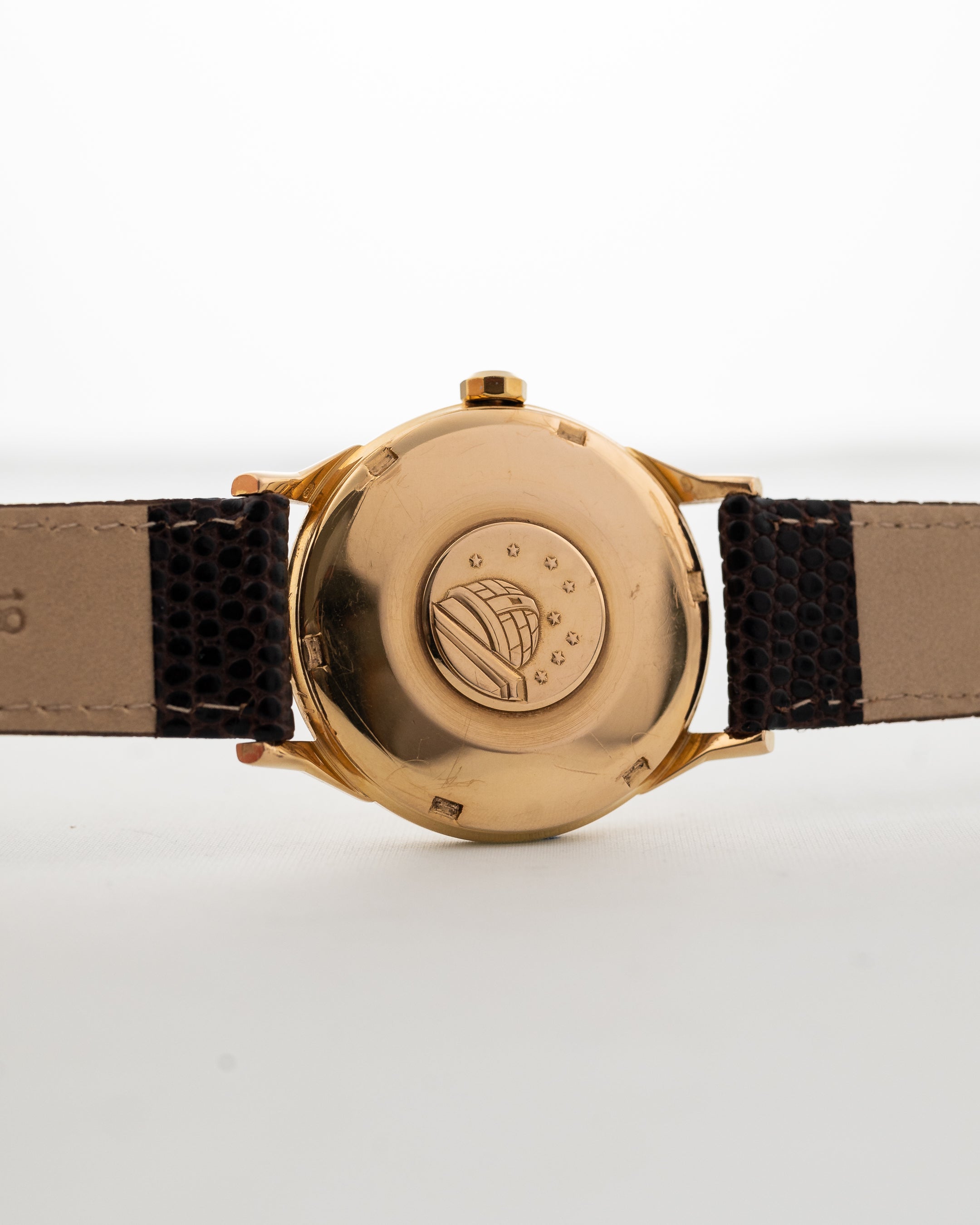 Bien proporcionado, sencillo y clásico, este Constellation cuenta con un fondo de caja atornillado, cronómetro automático Omega Calibre 561 y unas magníficas asas giradas ligeramente hacia abajo.