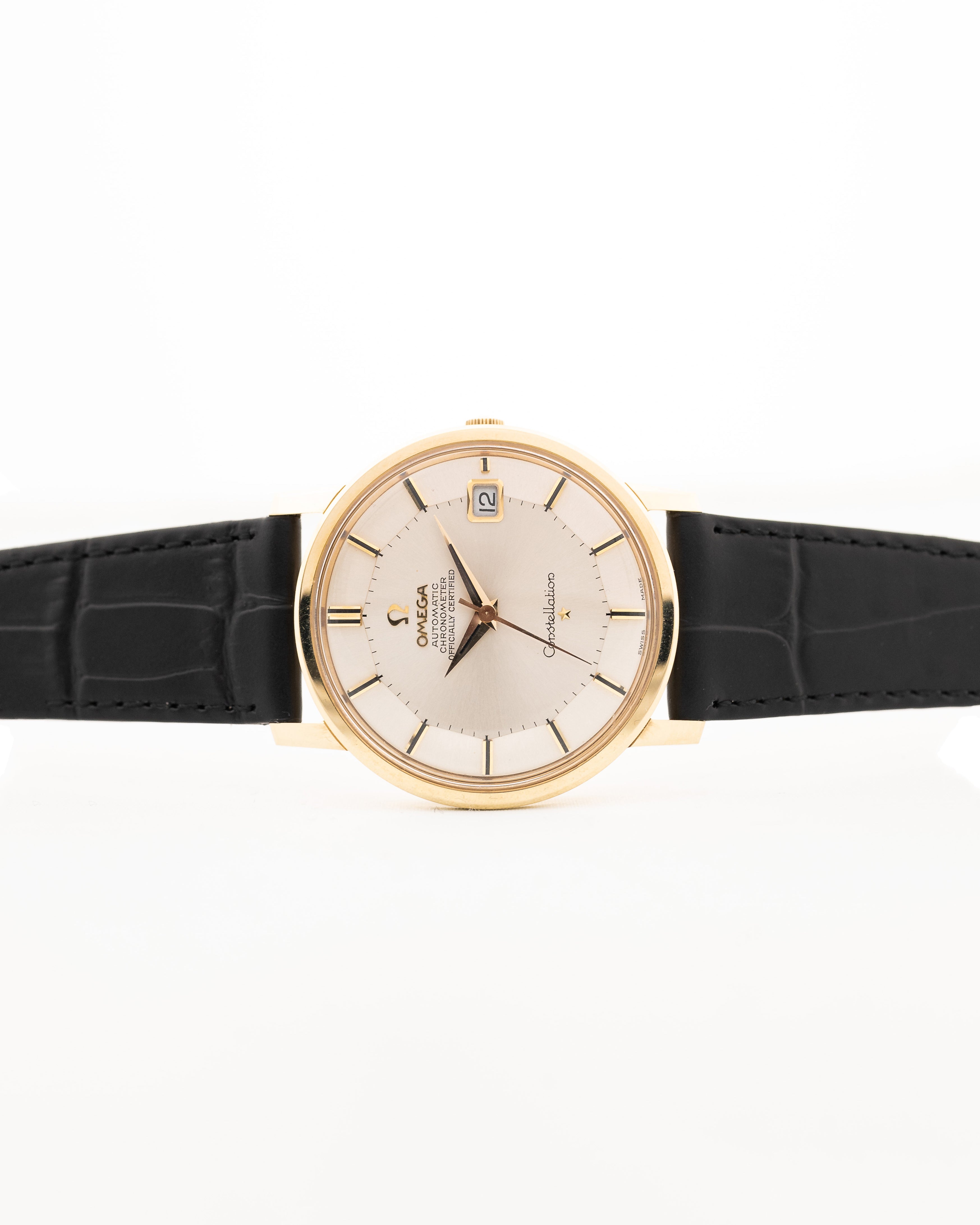 Bien proporcionado, sencillo y clásico, este Constellation cuenta con un fondo de caja atornillado, cronómetro automático Omega Calibre 562 y unas magníficas asas giradas ligeramente hacia abajo.