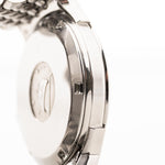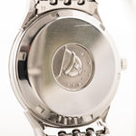 Este compacto y hermoso cronómetro automático Omega Constellation tiene todo lo que usted desea en un reloj de vestir: Caja de acero inoxidable de 34 mm, segundero central, una bellísima esfera plateada sunburst pie pan y unos raros y delgados índices de bastón con incrustaciones de ónice. Lanzado por primera vez en 1952, el Constellation fue la respuesta de Omega al Rolex Datejust.