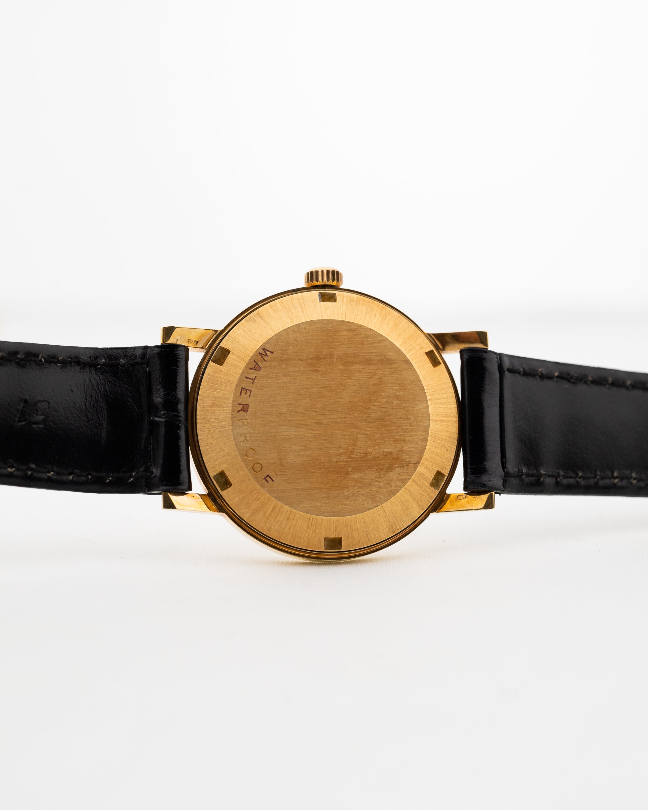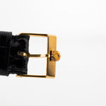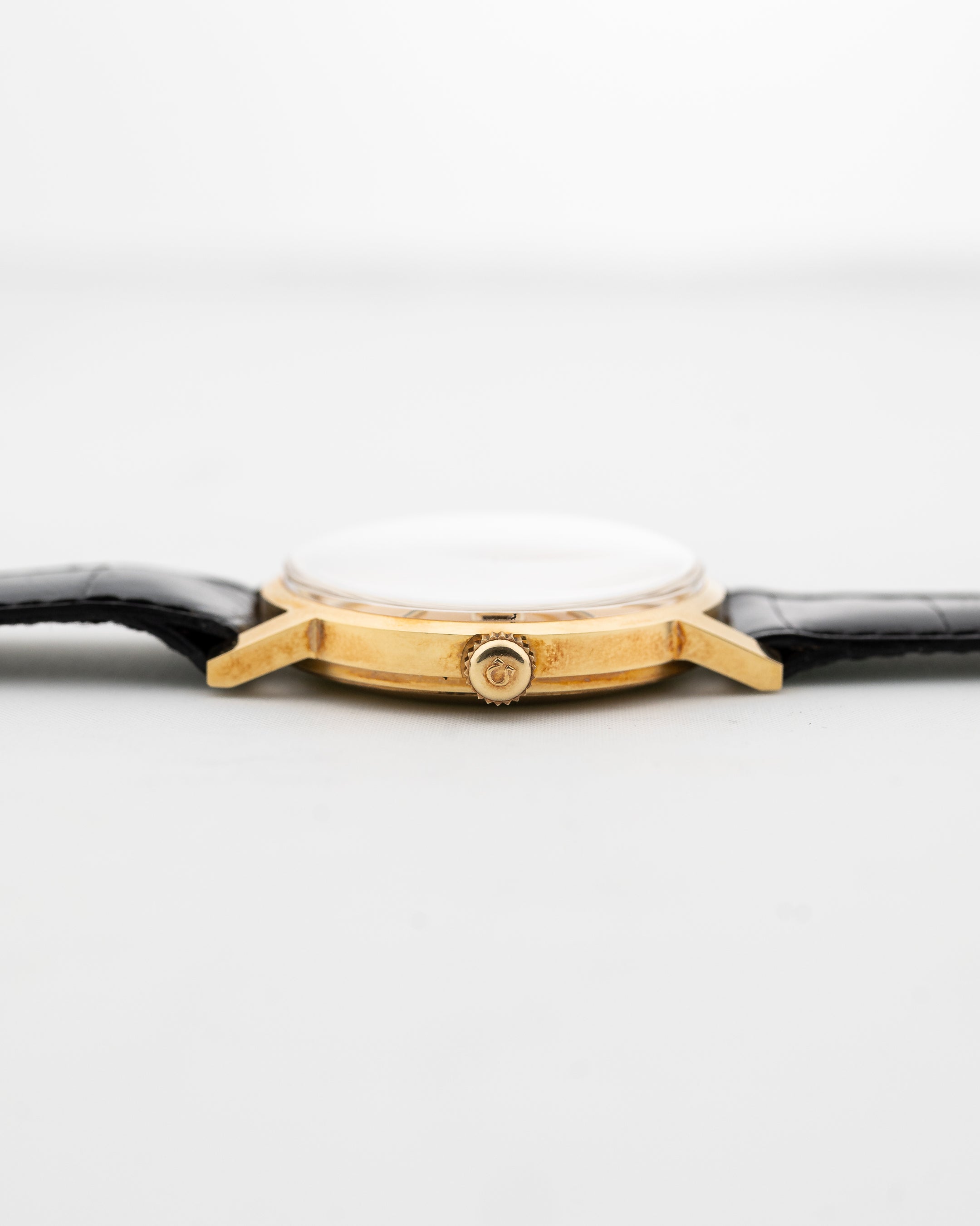 Este ejemplar no sólo es bonito, sino también sustancioso. Equipado con una caja de oro amarillo de 35 mm, asas rectas y una preciosa esfera de oro amarillo con índices de ónice, no hay nada mejor que este reloj.