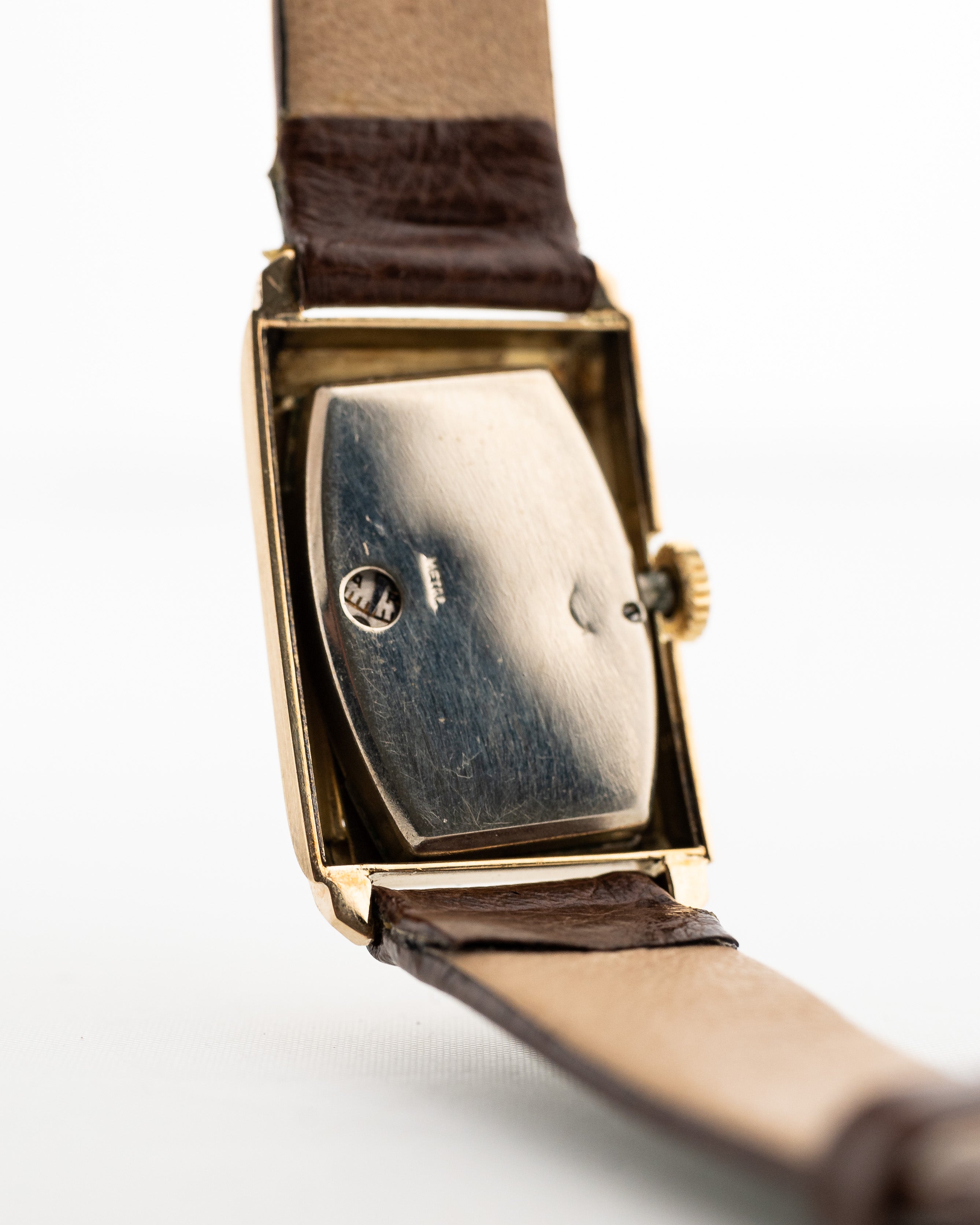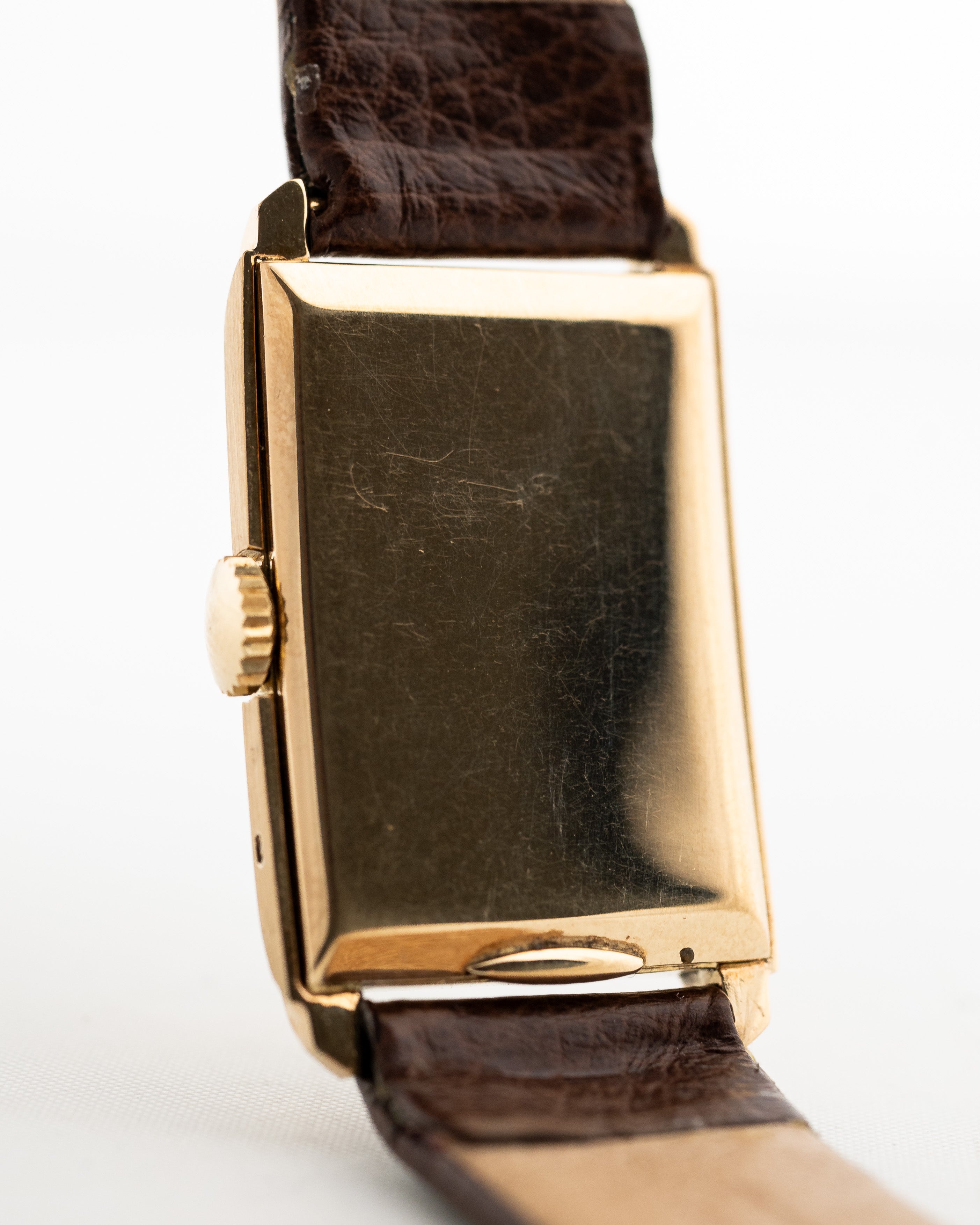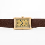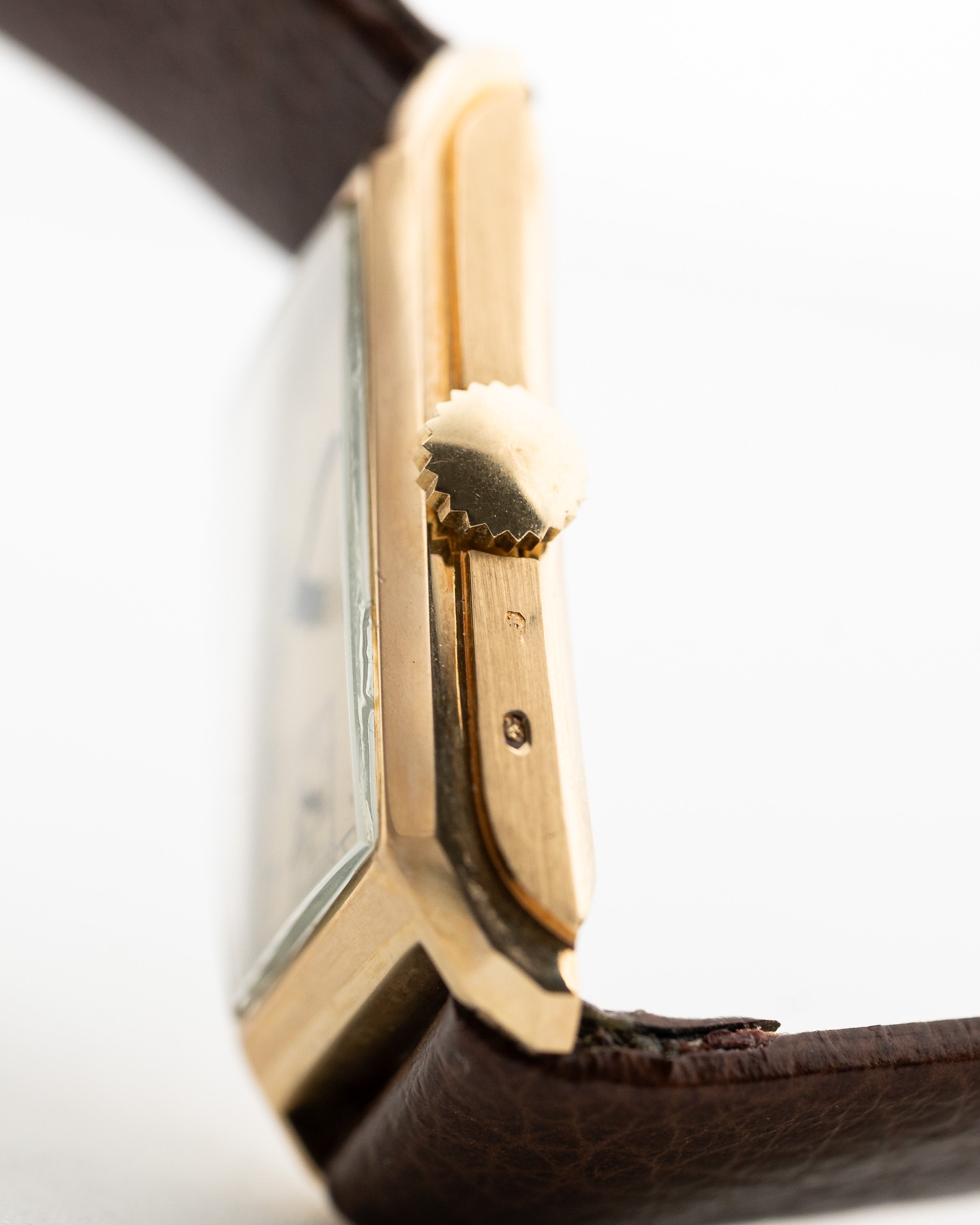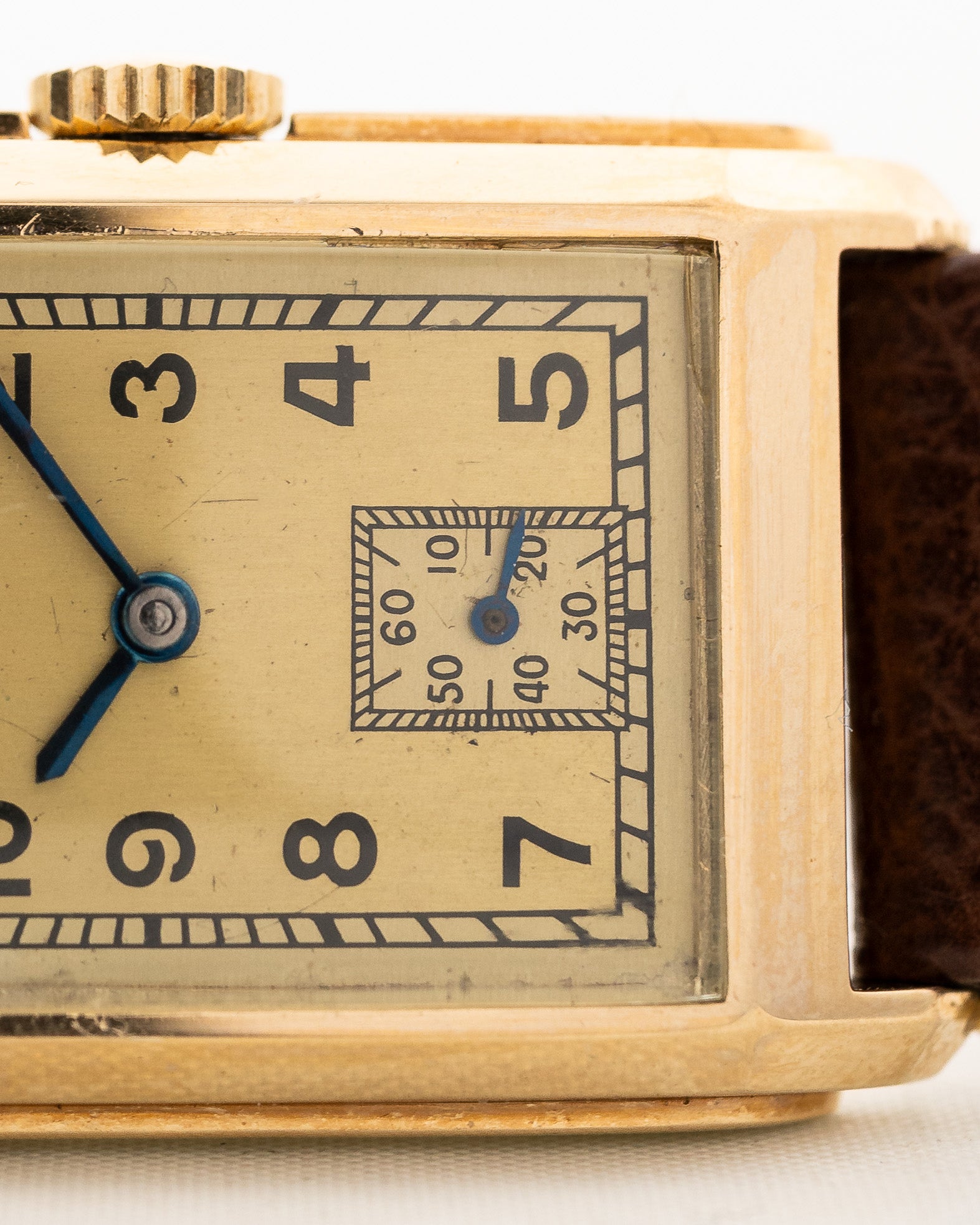 No es el primer reloj de vestir Omega Art Déco del que nos enamoramos. Este ejemplar cuenta con una enorme caja rectangular de oro de 14 quilates y resulta aún más atractivo gracias a su preciosa esfera de color ligeramente dorado con números árabes Art Déco, segundero subsidiario y un maravilloso y exclusivo segundero azul. ¡Y la guinda del pastel es su impresionante estado de conservación!
