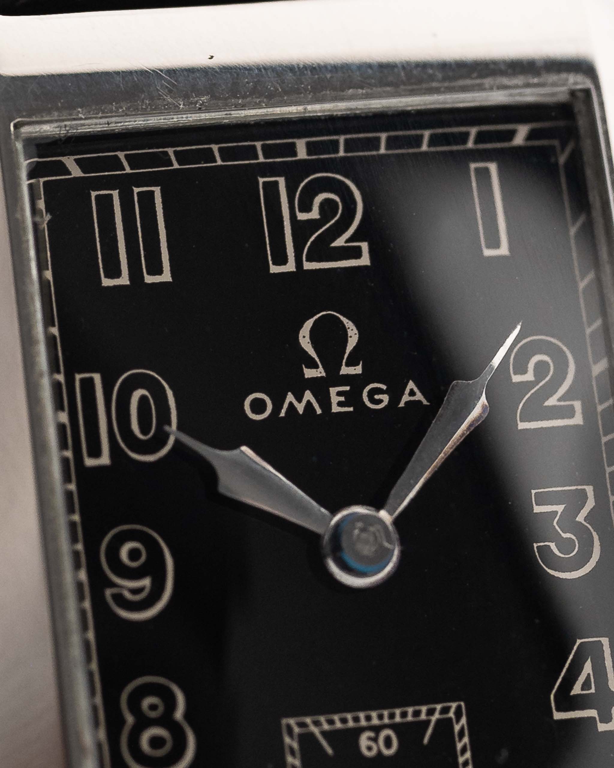 Omega Rectangular "Syringe" - Esfera dorada negra, años 30 - Geometría Art Déco
