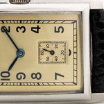 No es el primer reloj de vestir Omega Art Déco del que nos enamoramos. Este ejemplo cuenta con una enorme caja rectangular de acero y resulta aún más atractivo por su preciosa esfera de color ligeramente dorado con números árabes Art Déco, segundero subsidiario y un maravilloso y exclusivo segundero azul. ¡Y la guinda del pastel es su estado nos!