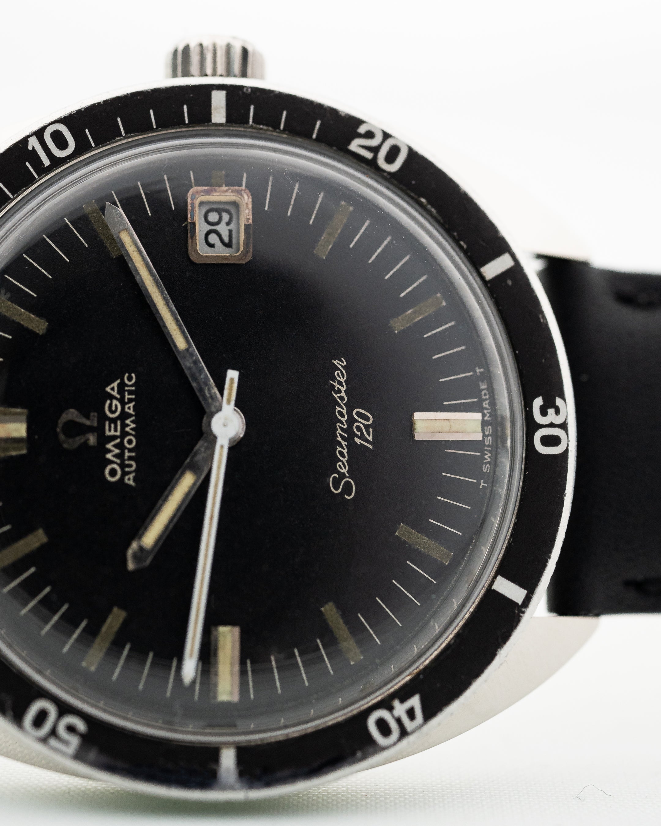 Aquí puede ver un fascinante y raro Seamaster 120 fabricado por Omega en 1967. Presenta una caja de acero inoxidable de 35,5 mm con una preciosa esfera negra mate en perfecto estado.