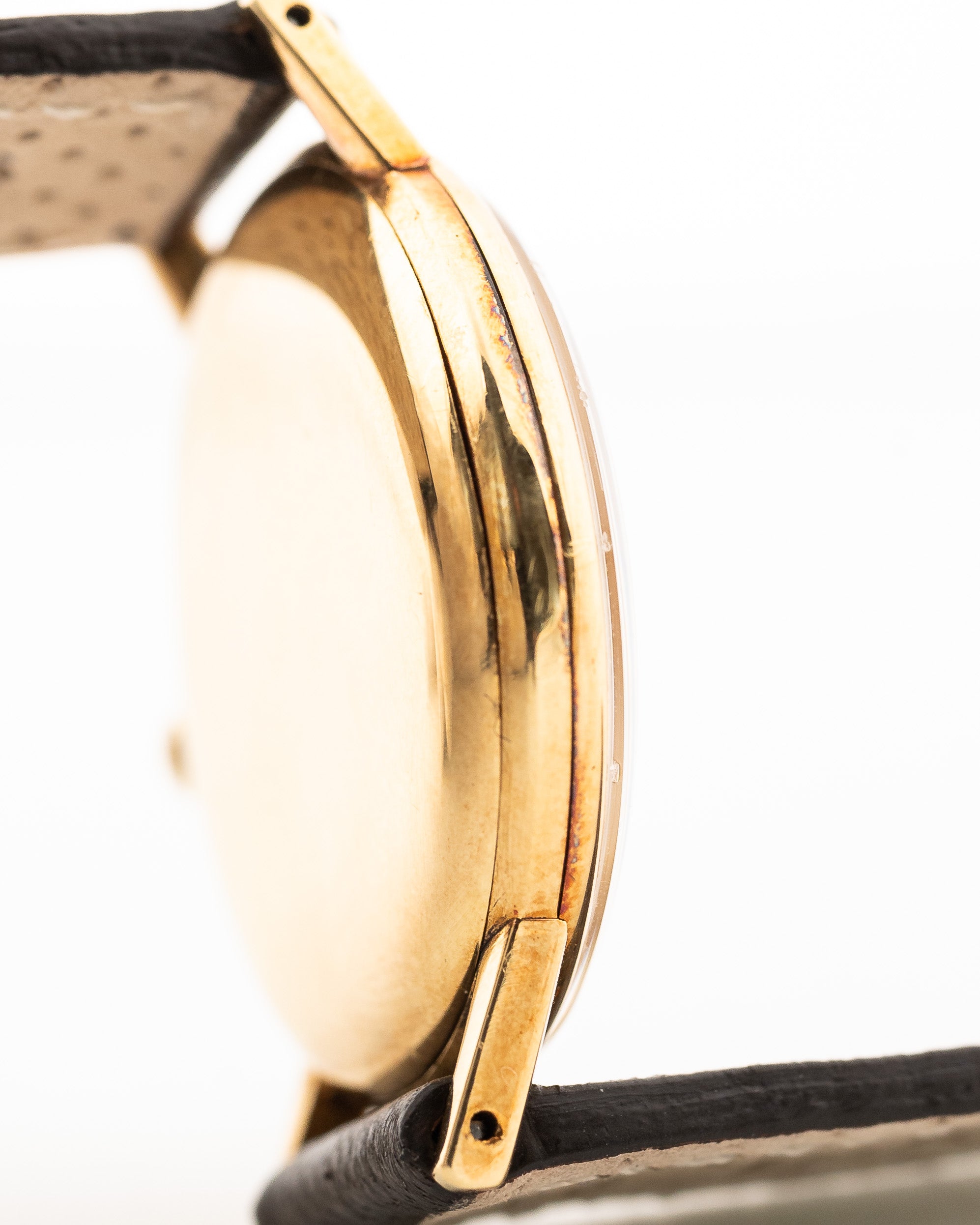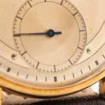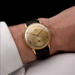 Equipado con una caja de 35 mm de oro amarillo de 18 quilates, asas rectas y una preciosa esfera con anillo capitular, realmente no hay nada mejor que este reloj. La esfera ha envejecido maravillosamente, y presenta números arábigos a las dos, cuatro, ocho, diez y doce. Una esfera subsidiaria de segundero, eleva aún más el juego de vestir de este reloj.