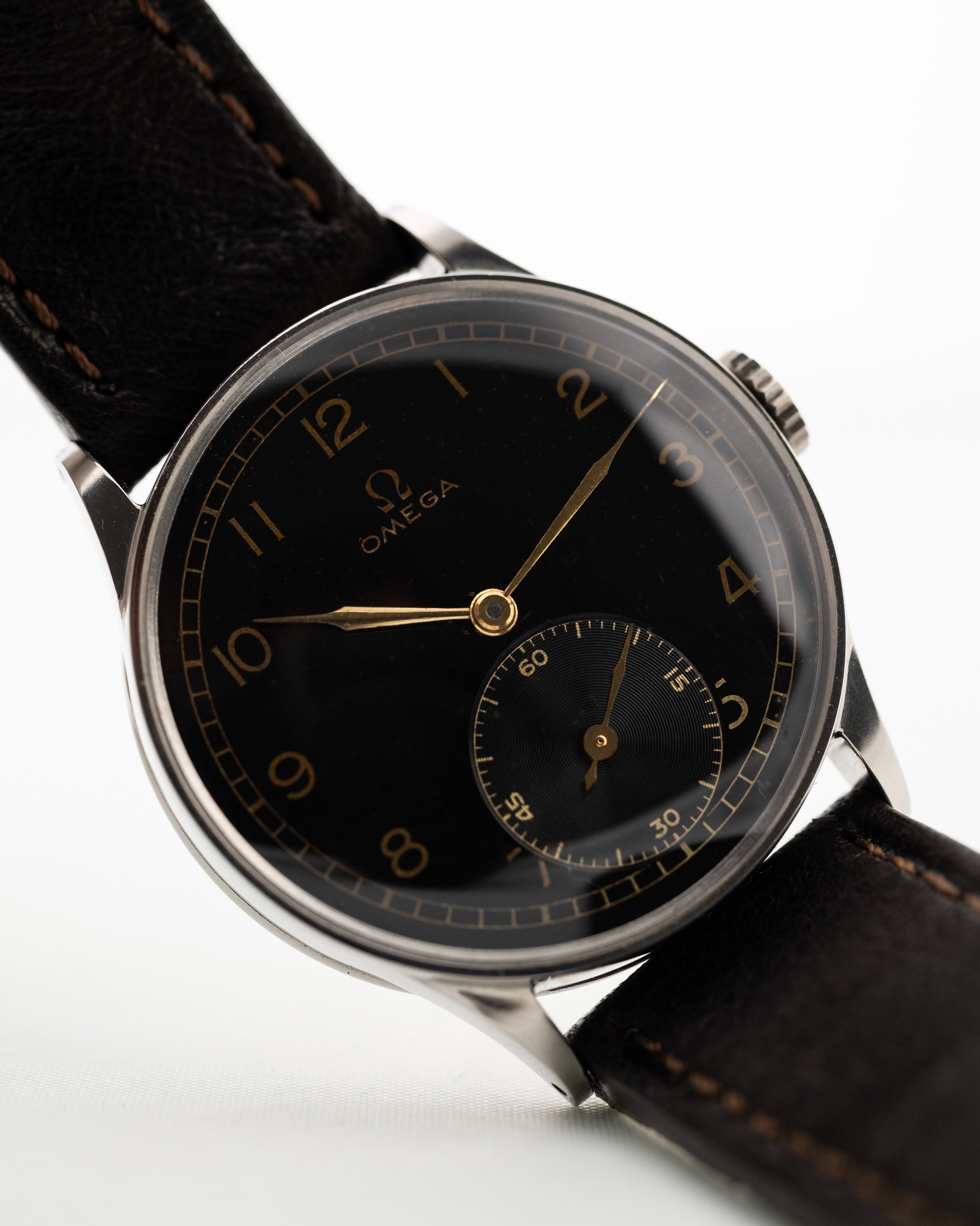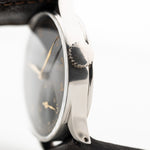 Equipado con una caja de acero de 33 mm, asas rectas y una preciosa esfera negra, realmente no hay nada mejor que este reloj. La esfera dorada ha envejecido maravillosamente, y cuenta con números arábigos, un segundero subsidiario y agujas de jeringuilla que elevan aún más el juego de vestir de este reloj.