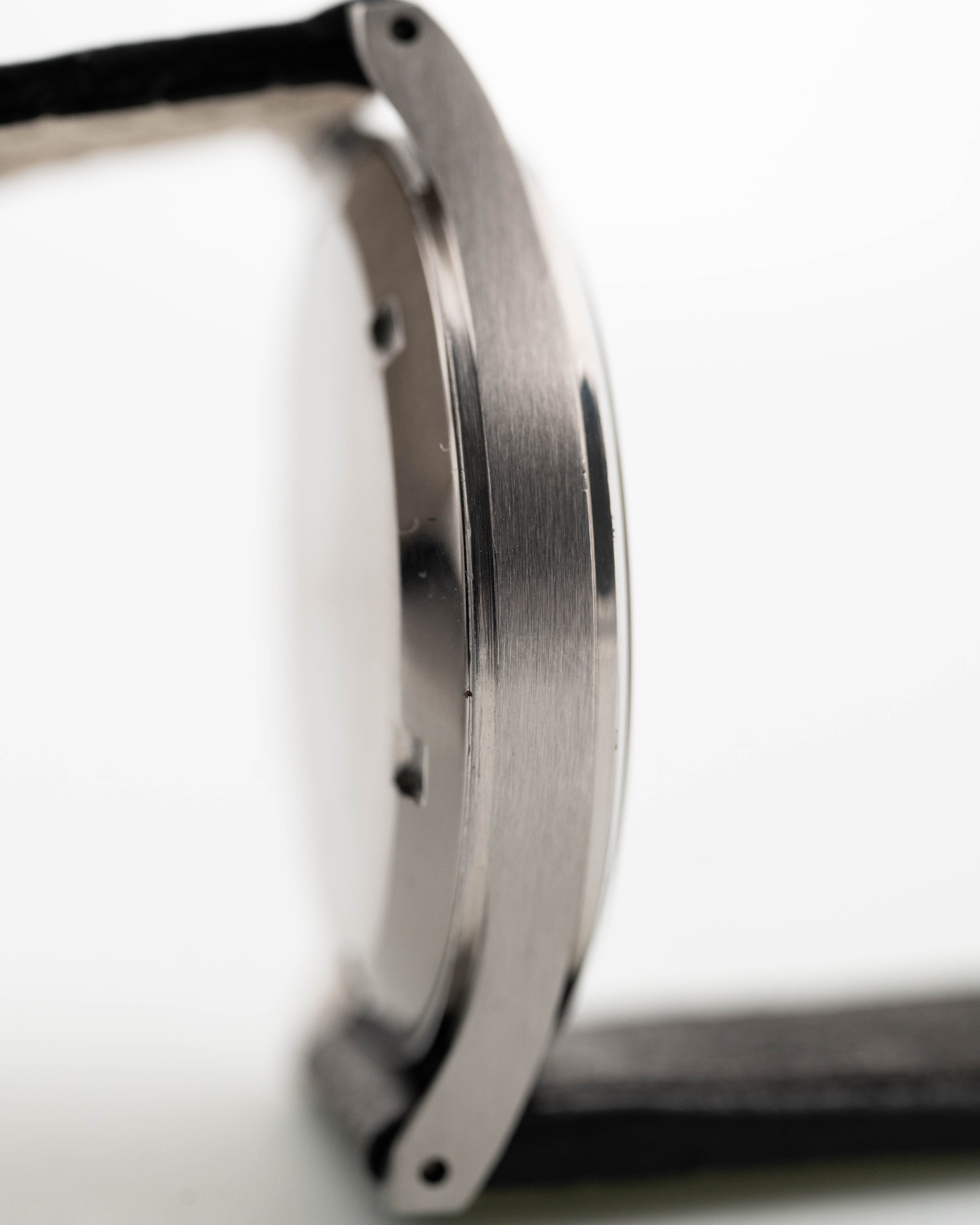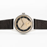 Equipado con una caja de acero de 35 mm, asas curvadas hacia abajo y una preciosa esfera bicolor, no hay nada mejor que este reloj. La esfera ha envejecido maravillosamente, y cuenta con números arábigos y un segundero subsidiario, lo que aumenta aún más la elegancia de este reloj.