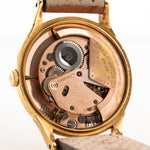 Equipado con una caja de 35 mm de oro amarillo de 18 quilates, asas curvadas hacia abajo y con una preciosa esfera de ferrocarril, realmente no hay nada mejor que este reloj. La esfera ha envejecido maravillosamente, y presenta un doce árabe en la parte superior e índices horarios en forma de diamante. Una esfera subsidiaria de segundero, eleva aún más el juego de vestir de este reloj.