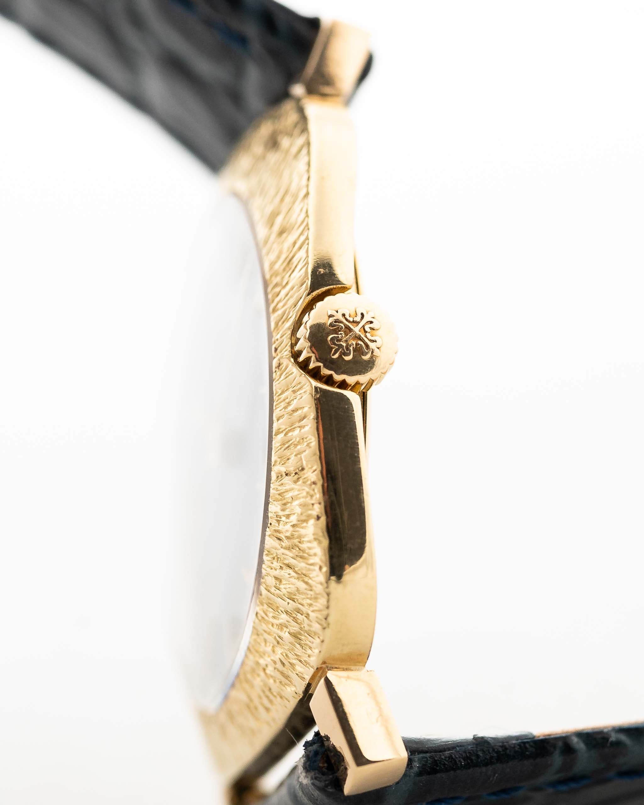 La guinda del pastel, en este Patek Philippe en particular, es el enorme bisel cuadrado con acabado de corteza - raramente visto en relojes Patek Philippe.