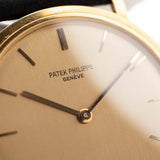 Vintage Patek Philippe 3520 Calatrava Ref. 3520 de los años 60. 32 mm en oro amarillo de 18 quilates con movimiento de cuerda manual, esfera dorada cepillada original y correa de piel.