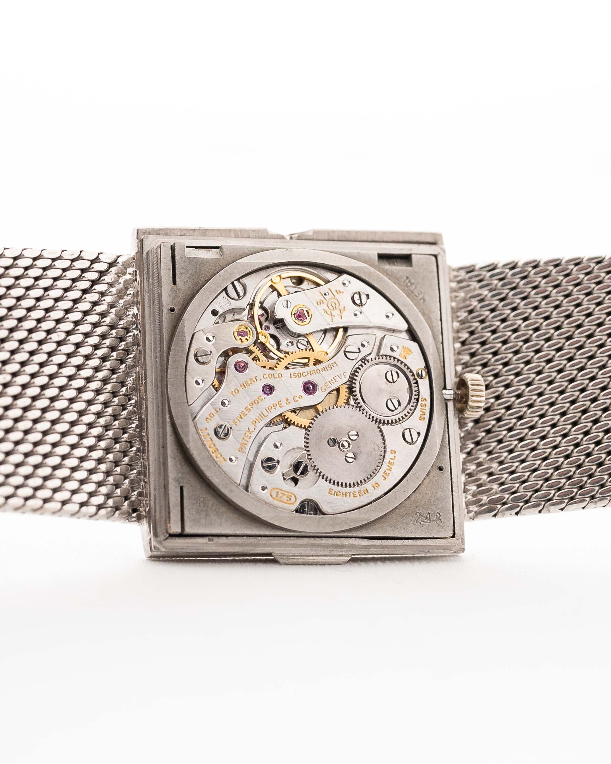 Este ejemplar se conserva en excelentes condiciones y se completa con su brazalete original de oro blanco y el cierre Patek, lo que lo convierte en un icono de la casa Patek impresionantemente conservado.