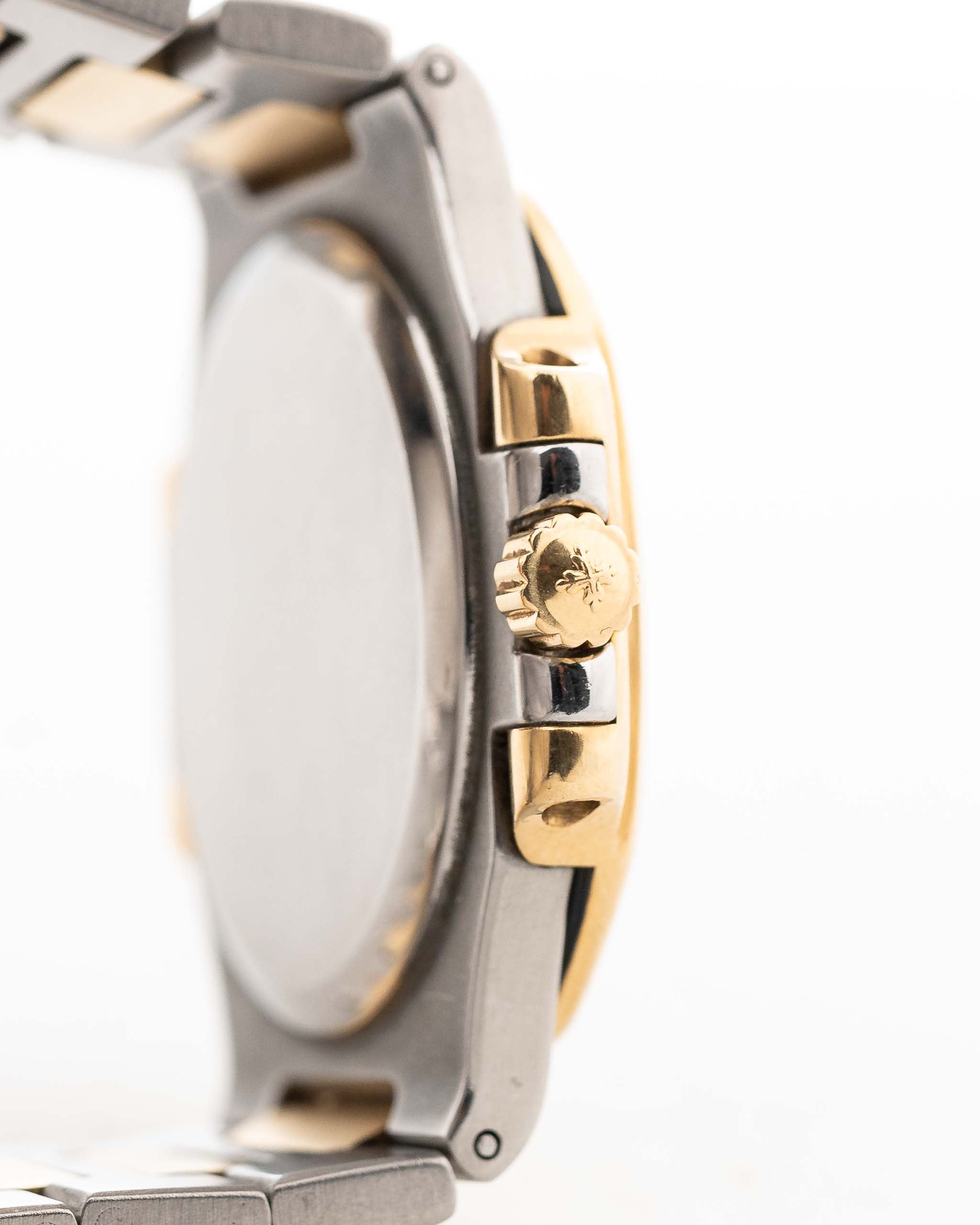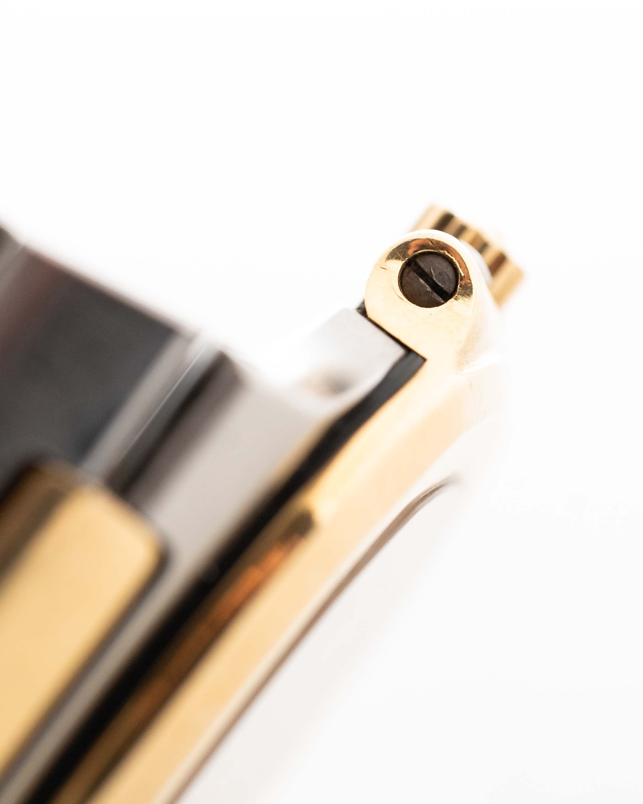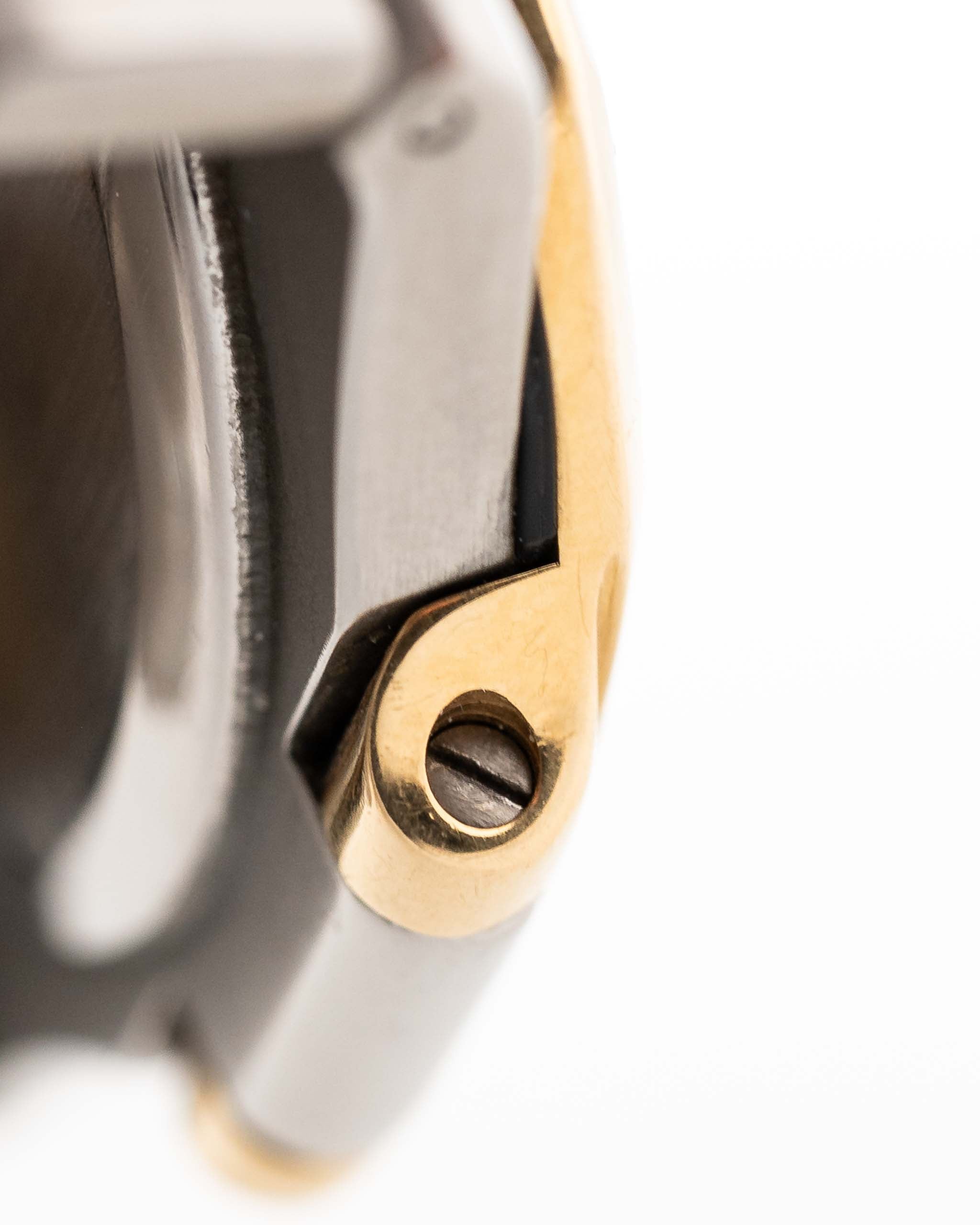 • caja monobloque de oro amarillo de 18 quilates y acero inoxidable con bisel atornillado