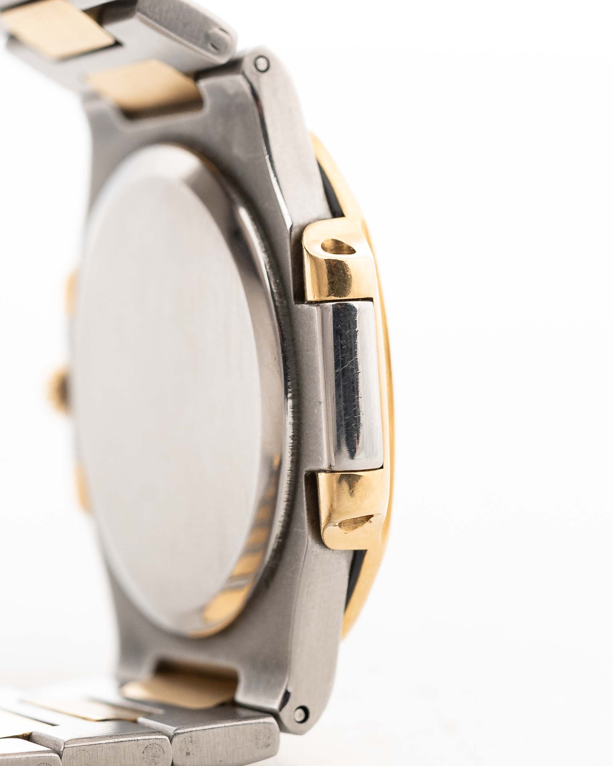 El Patek Philippe Nautilus 3800/1JA es la segunda y mediana versión de este icónico modelo de Patek Philippe. Presentada como una alternativa más compacta al 3700 original, esta referencia cuenta con una caja de 37,5 mm en una rara combinación bicolor de acero inoxidable y oro amarillo de 18 quilates, que ofrece un equilibrio perfecto entre deportividad y sofisticación.