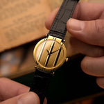 Reloj Audemars Piguet vintage de oro sostenido suavemente con ambas manos.