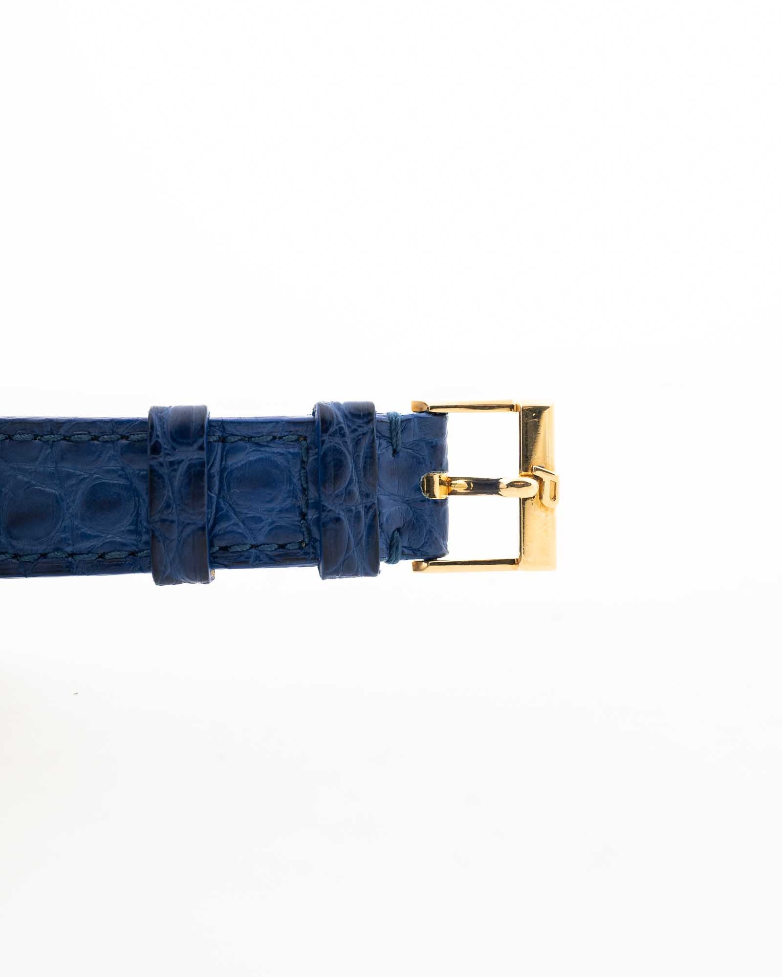 • Correa original Piaget de cuero azul, apta para muñecas de hasta 20 cm.