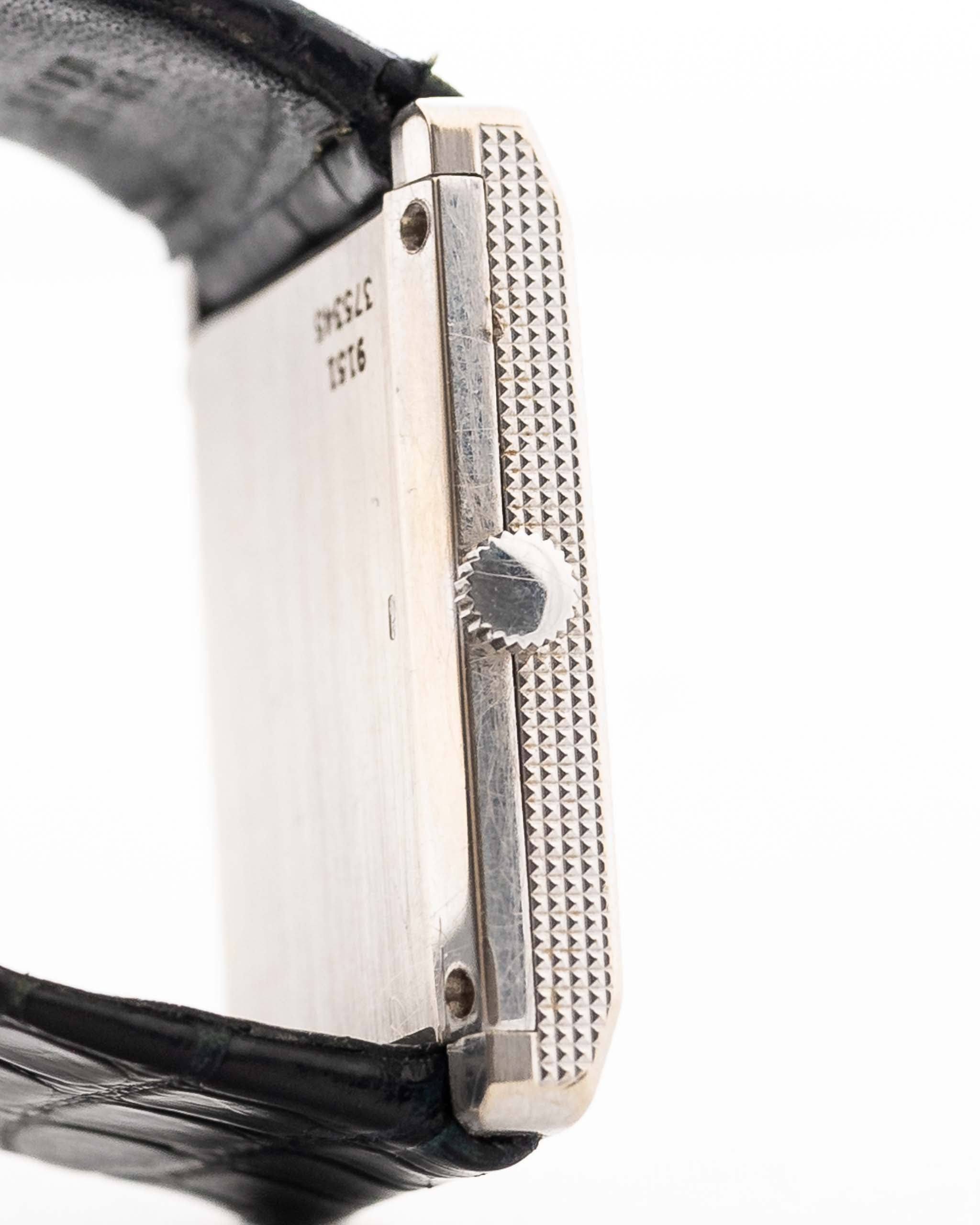 Pocos relojes encarnan la elegancia de los años setenta como este Piaget Ref. 9151 - una elegante creación con forma de tanque elaborada en oro blanco macizo de 18 quilates y dotada de una esfera de ónice natural que brilla con una profundidad estratificada.