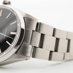 Esta pieza en particular de 1970 destaca por su impecable estado de conservación y su esfera negra mate impecable, así como por una caja robusta con bordes afilados en un estado excepcional.