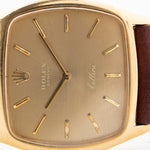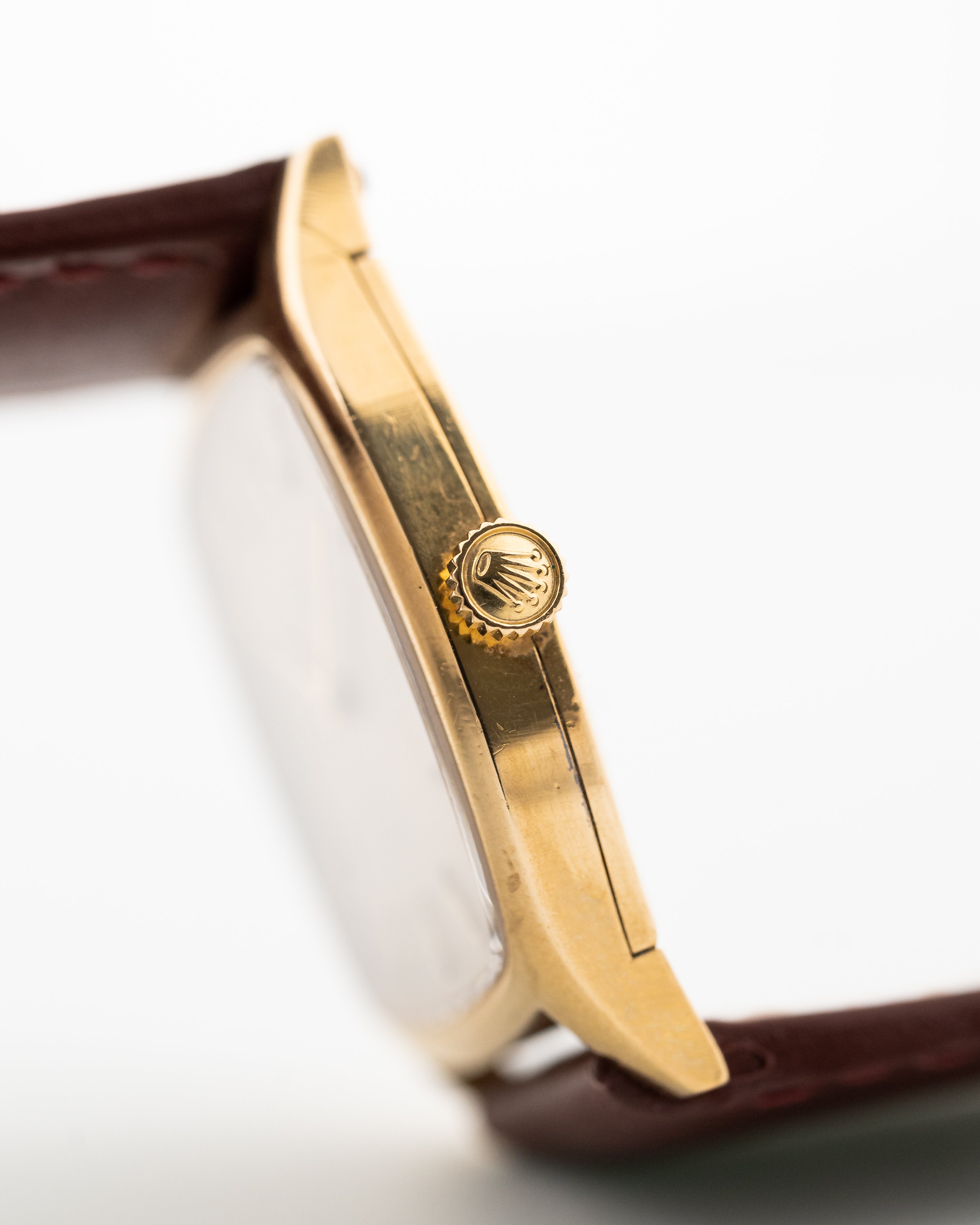 La línea Cellini de Rolex muestra el lado más elegante de Rolex en comparación con sus modelos deportivos más conocidos. Esta versión está equipada con una caja en forma de tonel de oro amarillo de 18 quilates, una forma de caja poco habitual en Rolex.