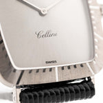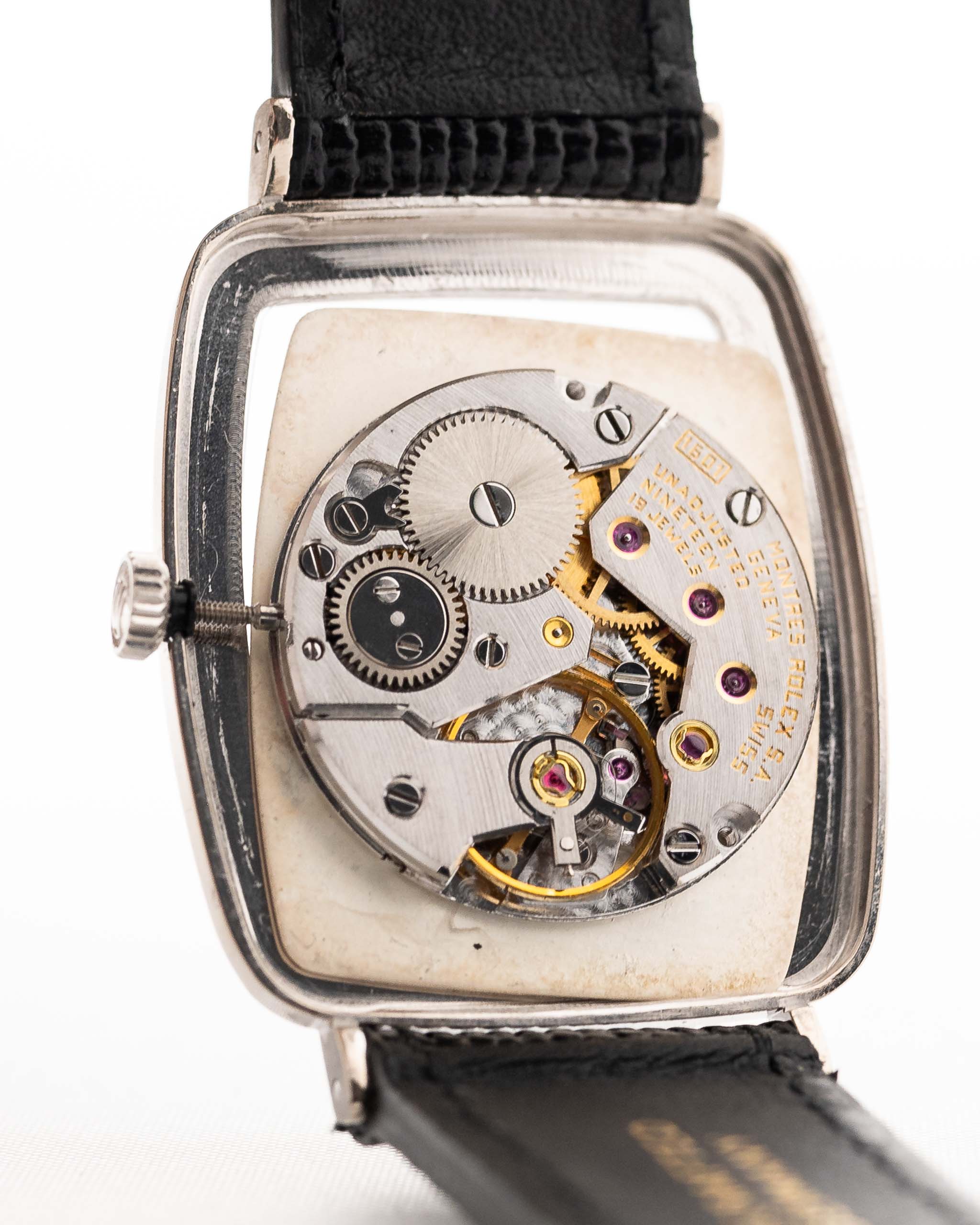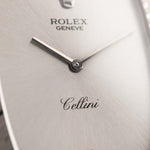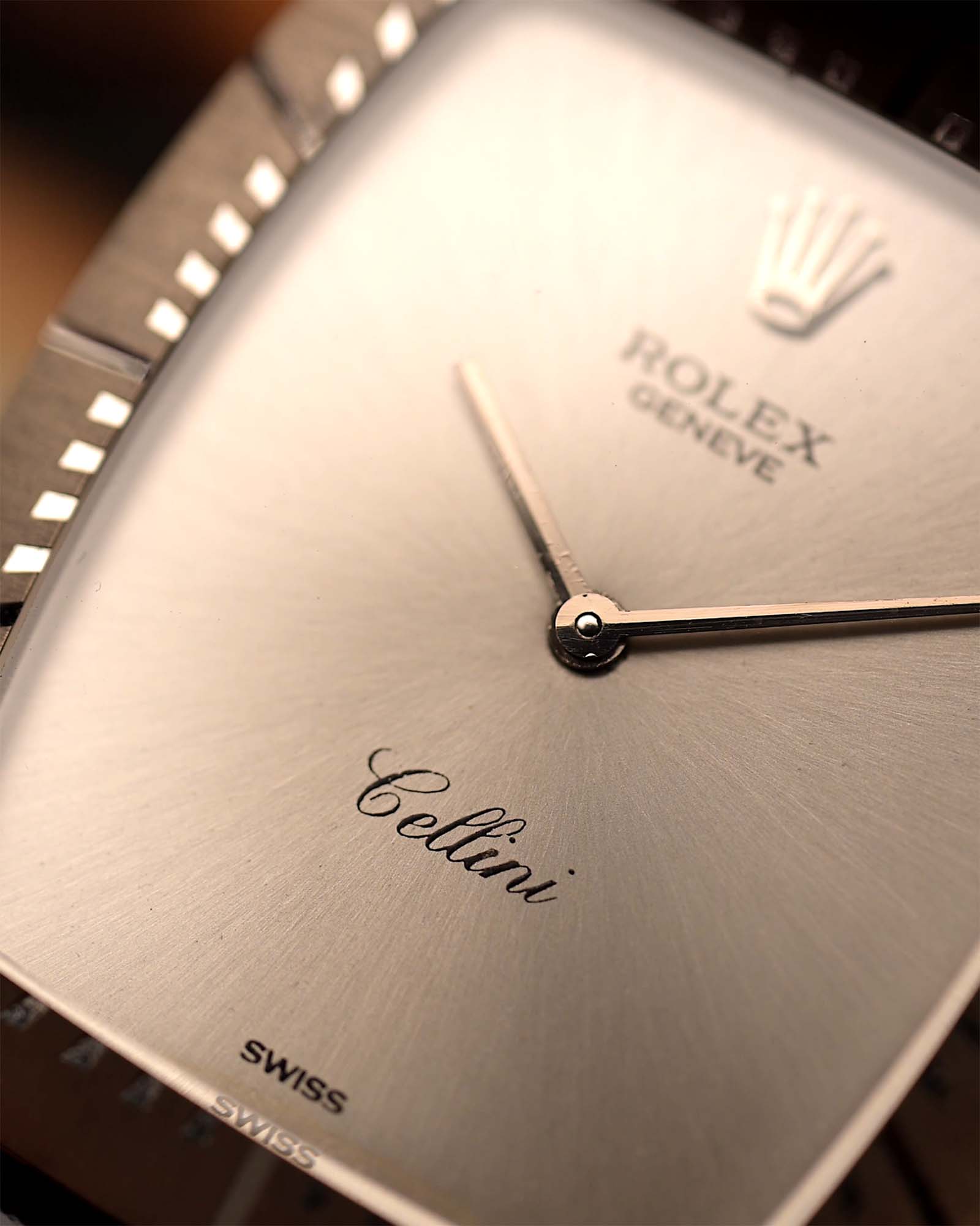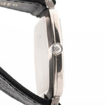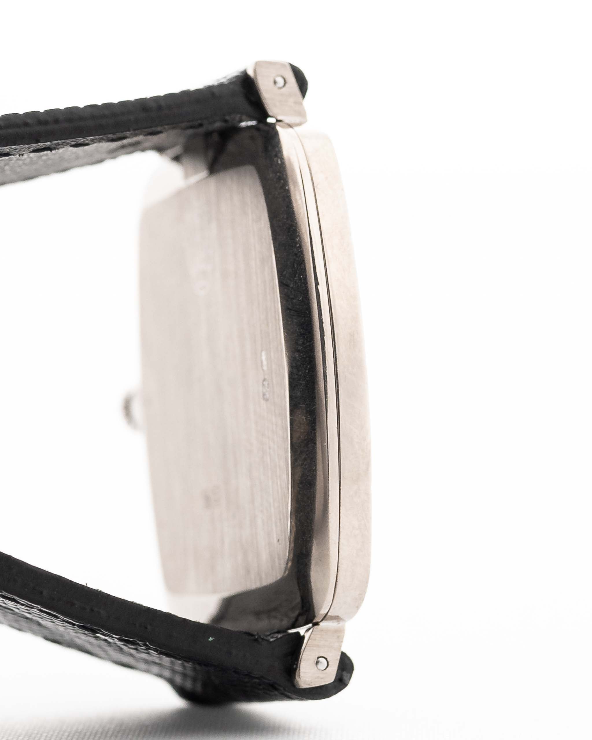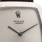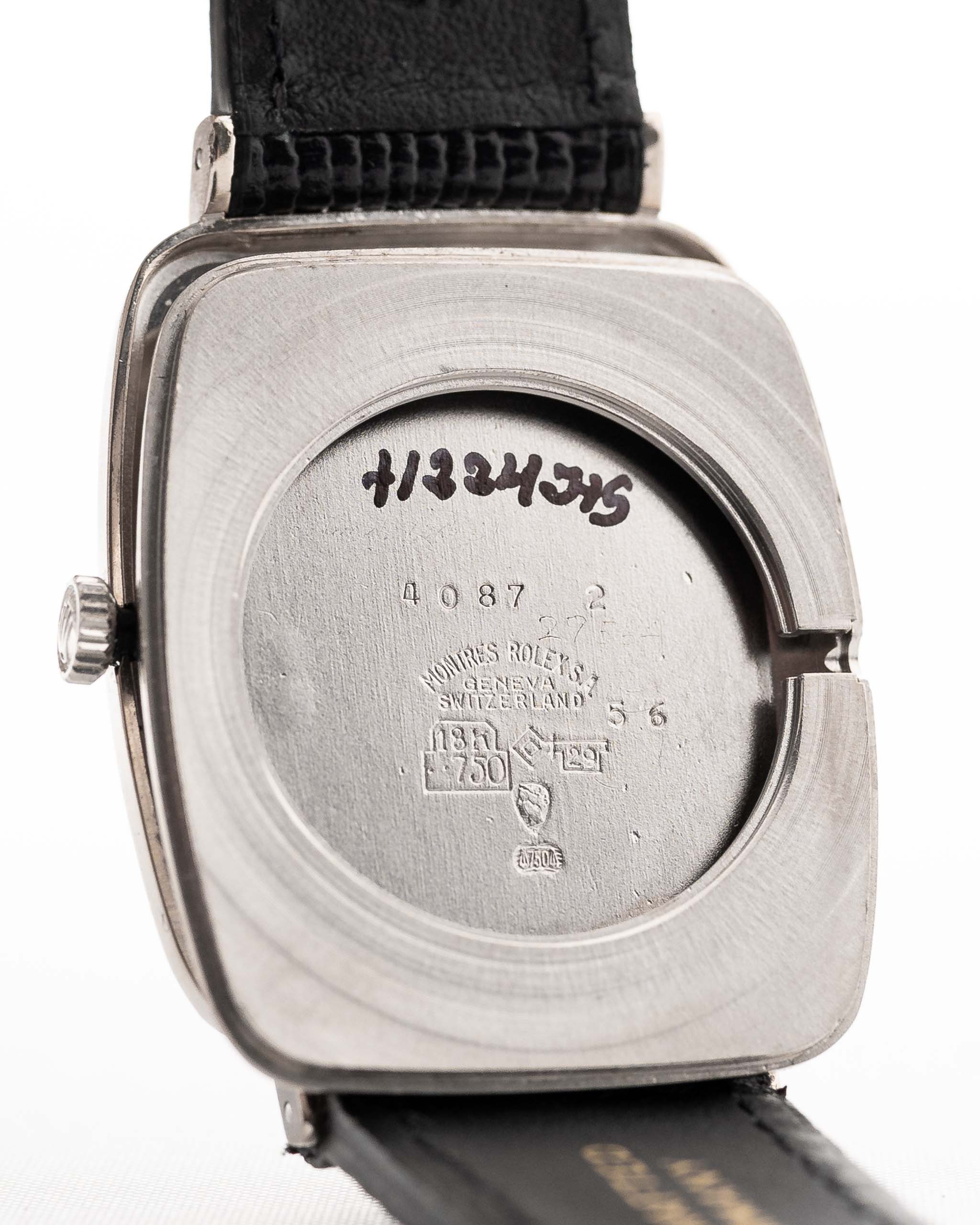 La línea Cellini de Rolex refleja la discreta elegancia de la marca, a un mundo de distancia de sus icónicos modelos deportivos. Este Ref. 4087, elaborado en oro blanco macizo de 18 quilates, presenta una rara caja rectangular que lo diferencia de la mayoría de los diseños Rolex de su época.